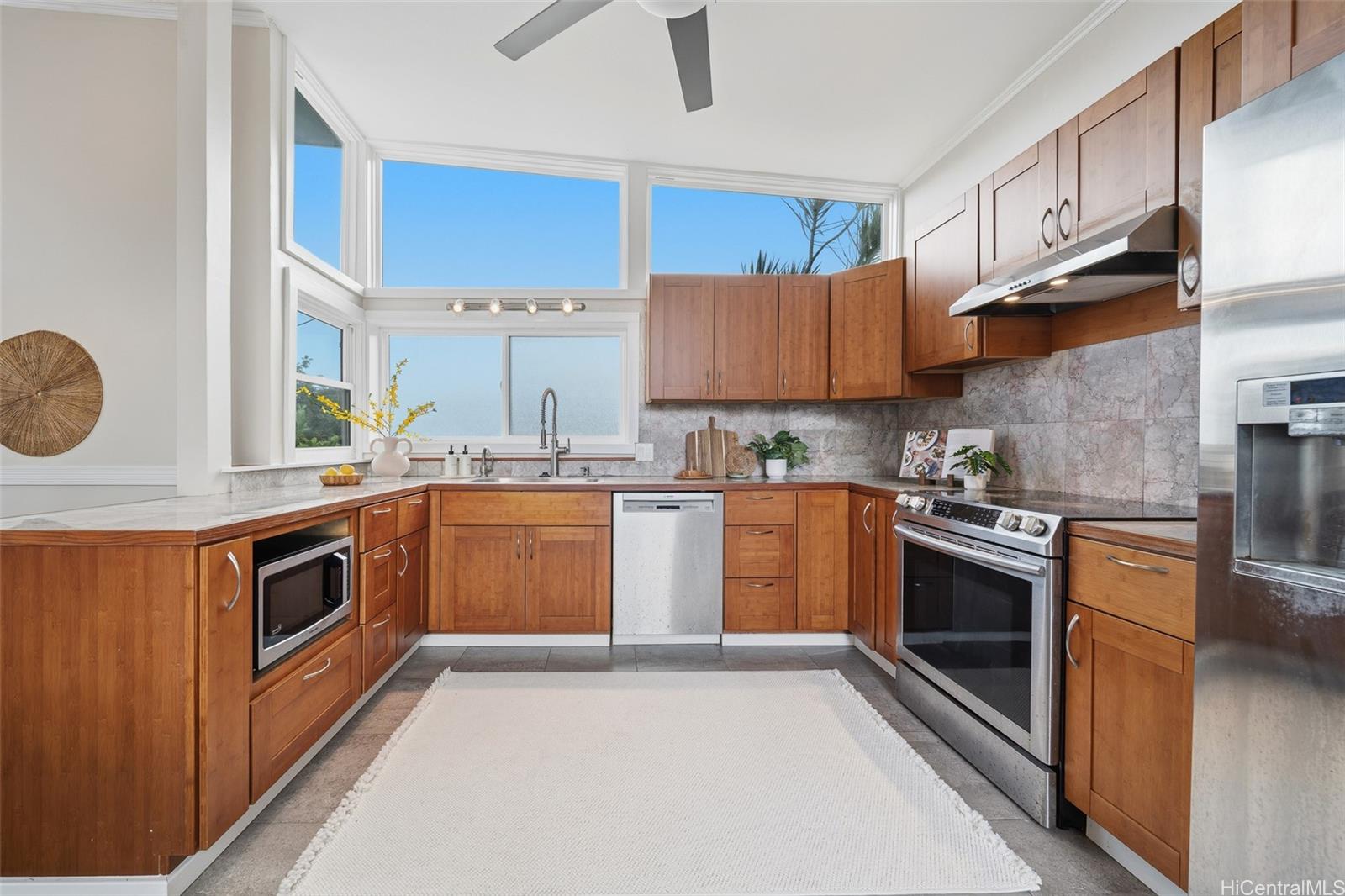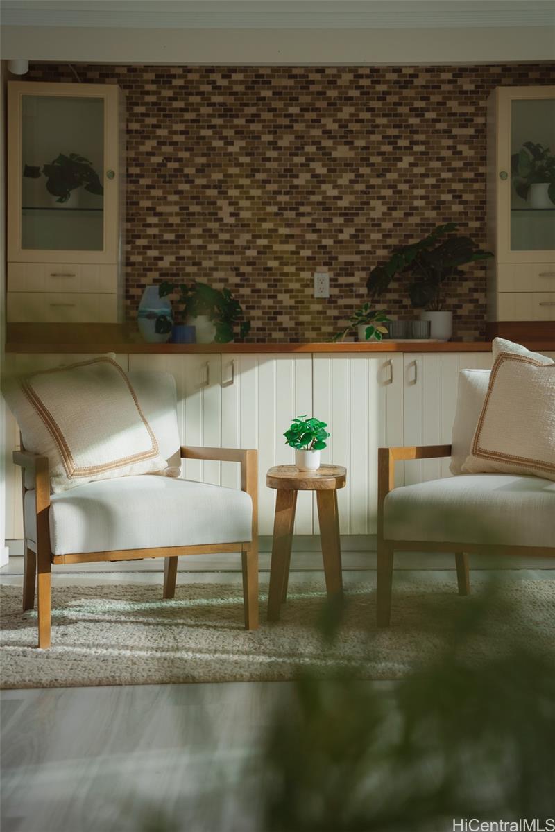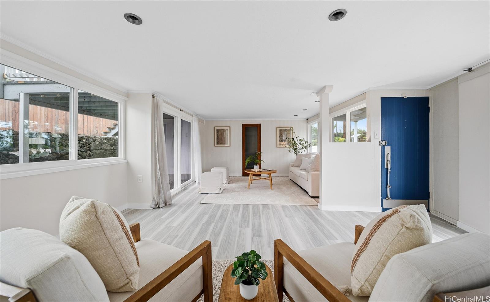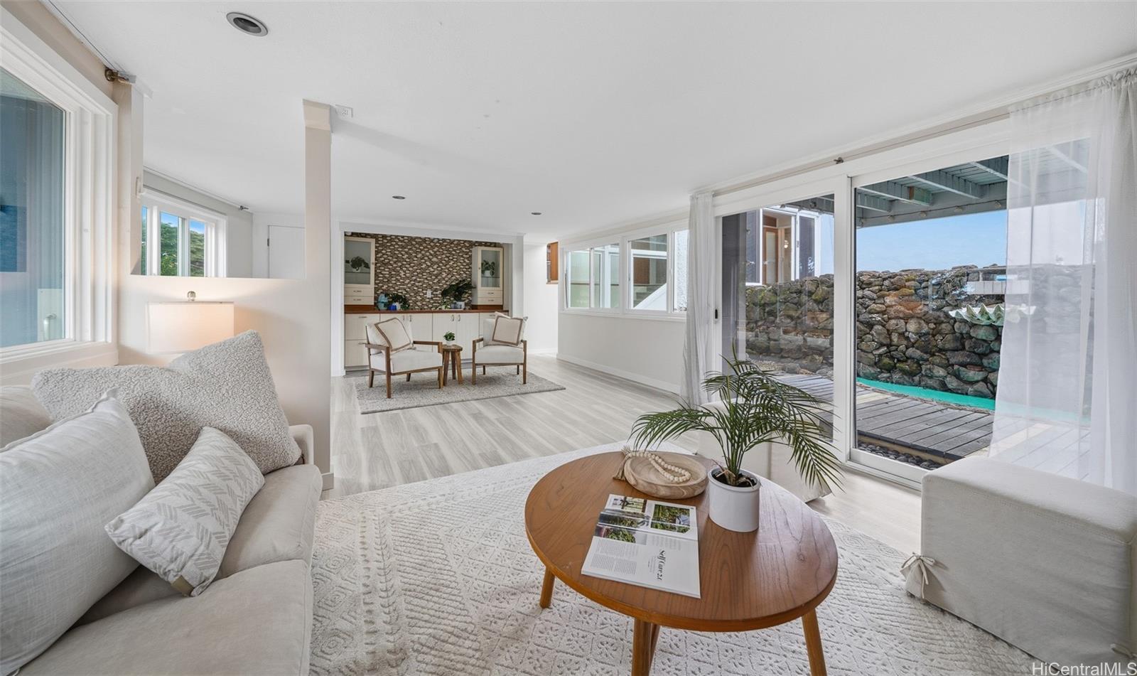 カネオヘ湾を見下ろすルラニ・オーシャンに佇む、ミッドセンチュリー・モダンの至宝。島民の暮らしと時代を超越したデザインが融合しています。ありきたりな住宅ではなく、個性、流れ、そして心地よい空間を体現しています。キッチンとバスルームは長年にわたり改装され、屋内と屋外が繋がっているため、ゲストとの交流もスムーズです。涼しい風が吹き抜ける複数のベランダからは山々の景色を一望でき、緑豊かで広々とした10,710平方フィートの敷地は、夢にまで見たADU(独立居住ユニット)の設置にも最適です。階下には、専用のエントランスを備えた独立したリビングエリアがあり、広々としたリビングやクリエイティブな空間として活用できます。プールサイドでくつろいだり、コオラウの滝を眺めたり、近くのラエナニ・ネイバーフッド・パークからカヤックを漕ぎ出したりと、様々な楽しみ方ができます。2台分のガレージに加え、駐車スペースと広々とした収納スペースも備え、機能性と楽しさを兼ね備えた住まいです。オーシャンフロントの住宅価格に見合うことなく、真の海辺のライフスタイルを実現できます。
