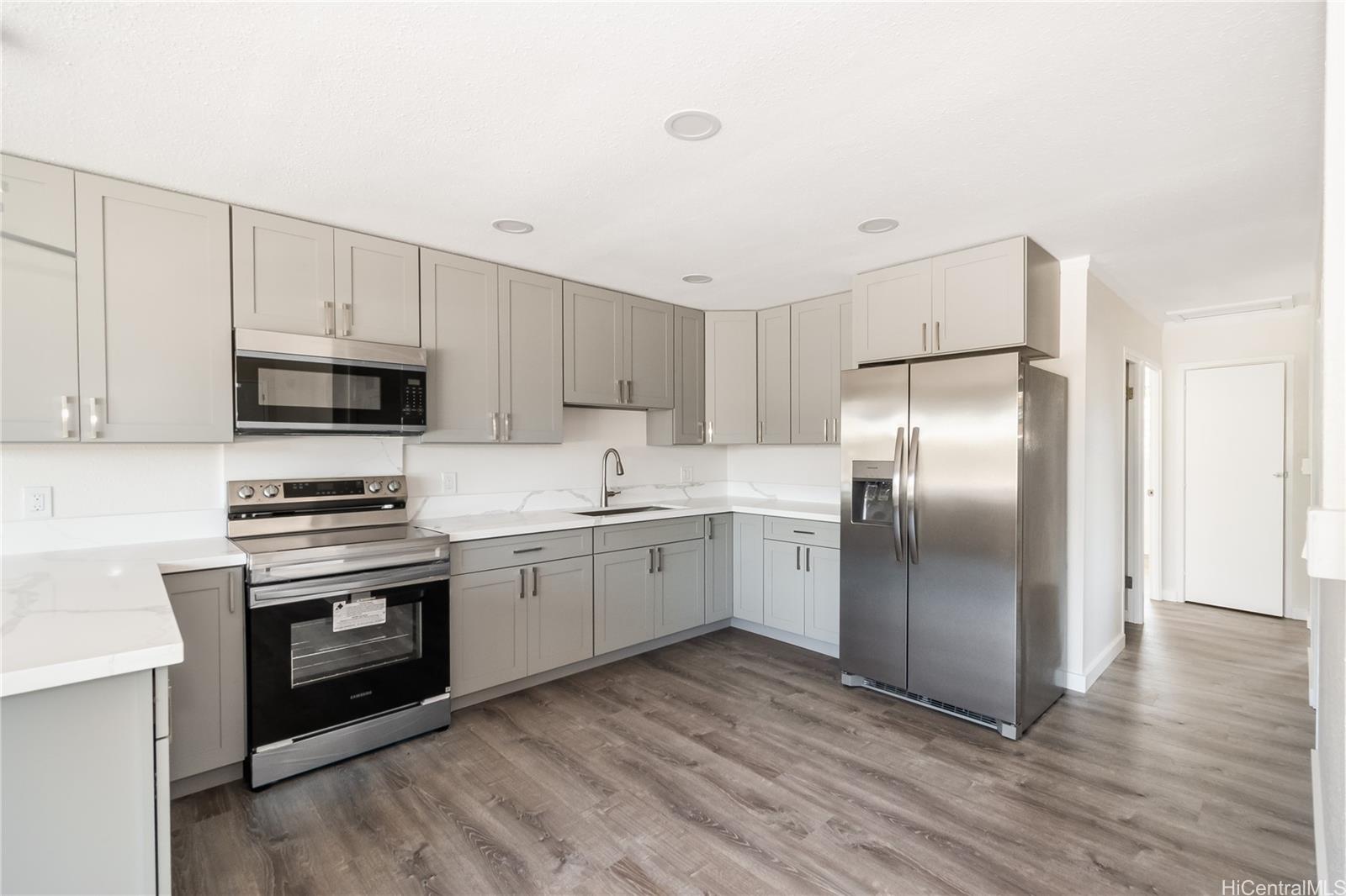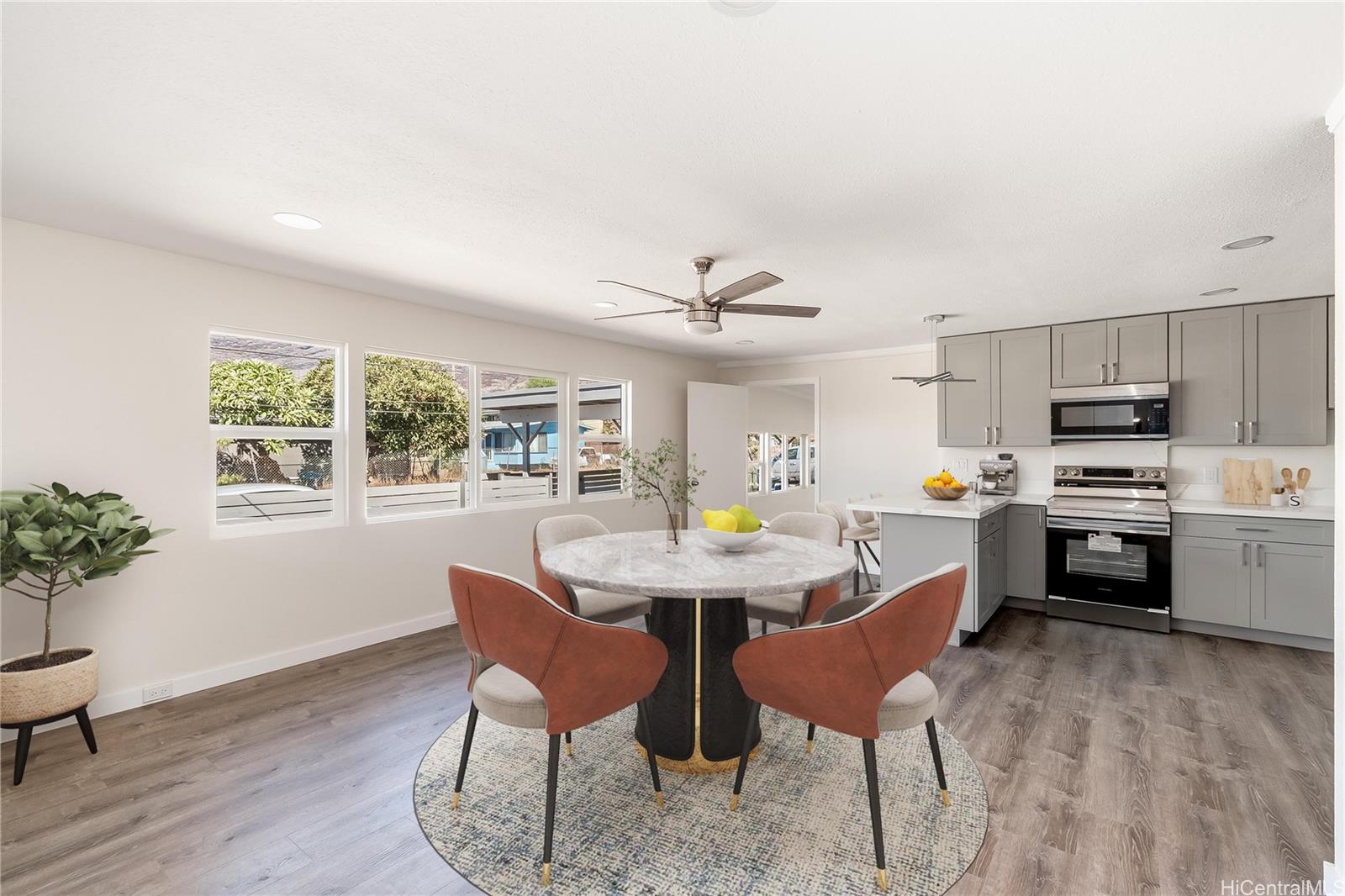 Discover the possibilities of this 4-bedroom home designed for flexibility and modern living. This beautifully renovated home features new floors, lighting, paint, appliances, and upgraded bathrooms and kitchen. A unique layout offers the option to close off one area, creating a private 1-bedroom, 1-bath space with wet bar - perfect for generating extra income or accommodating multi-generational living. Whether you're seeking a spacious single-family residence or a home with built-in versatility, this property delivers comfort, convenience, and opportunity in one.