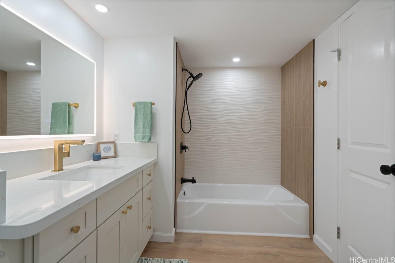 Fully remodeled one bedroom at Makaha Valley Towers. Ocean and mountain views with a lanai. Located on the upper side of the property, away from the main entrance and the central air conditioning building. Twenty-four hour security, a swimming pool, barbecues, community laundry and easy access to the bus line. Maintenance fee includes central air, electricity, hot water, cable tv and internet. Approximately 15 miles to Kapolei, where Costco, Home Depot, restaurants and movie theaters are located.