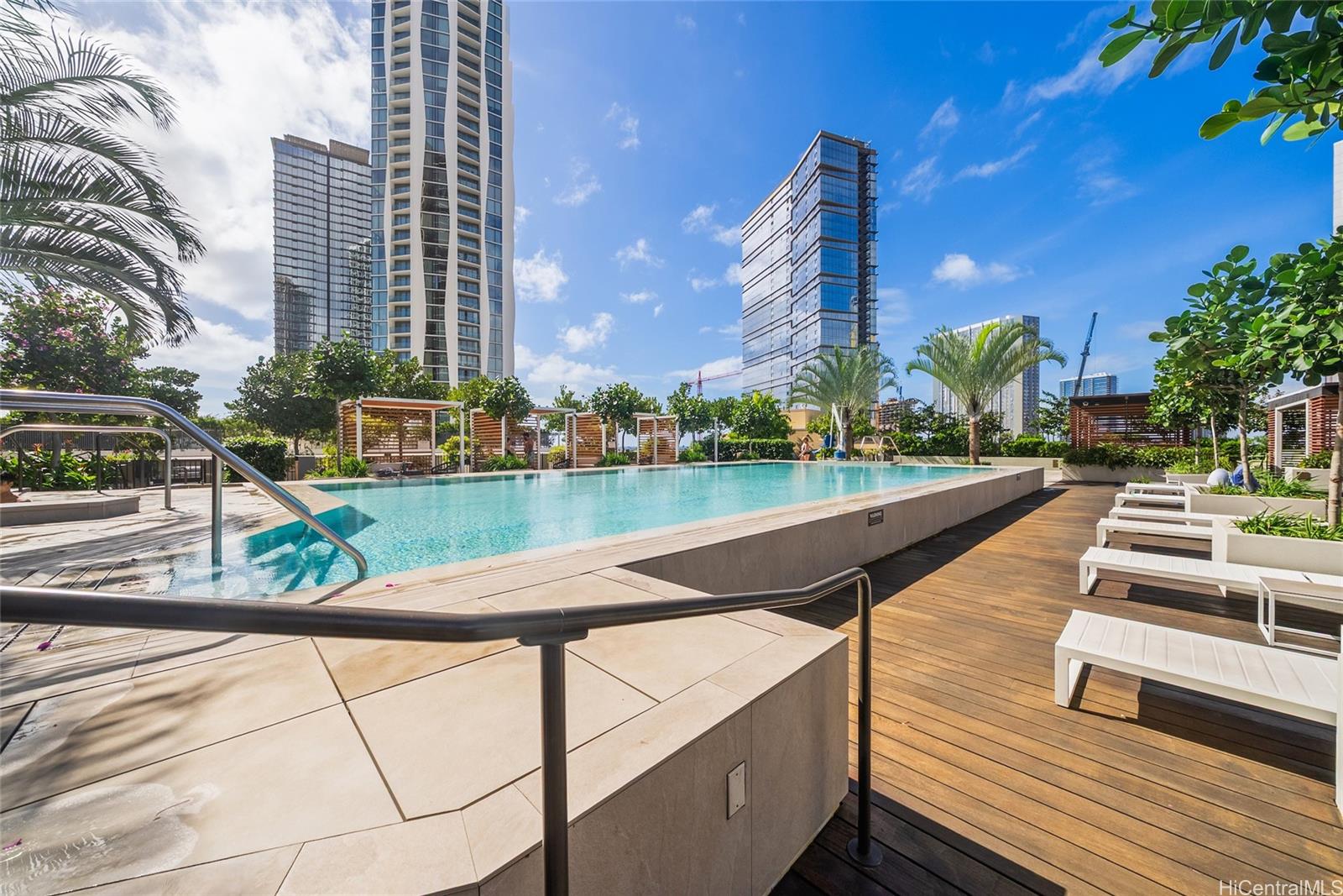 This thoughtfully designed studio located in ‘A‘ali‘i at Ward Village features high-quality, built-in furnishings that maximize both space and functionality. The unit includes a custom Murphy bed system with integrated couch, a built-in desk, and abundant closet and cabinet storage. The kitchen is outfitted with a sleek custom-panel refrigerator and dishwasher, creating a seamless and luxurious aesthetic while maintaining full functionality. Residents of ‘A‘ali‘i enjoy resort-style amenities, including a swimming pool, hot tub, state-of-the-art fitness center, multiple spacious gathering and party rooms, and a stunning 42nd-floor sky lounge with panoramic views. Ideally situated in the heart of Ward Village, this planned, walkable neighborhood offers convenient access to Ala Moana Shopping Center, Waikiki, Whole Foods Market, and an array of dining and entertainment options! The unit also includes a dedicated parking stall equipped with a 220V outlet, perfect for electric vehicle charging!