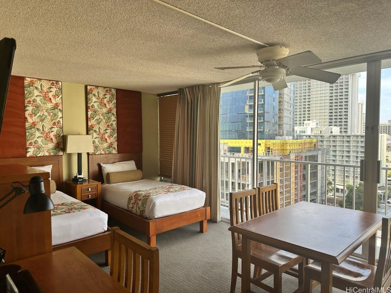 リゾートホテルゾーンに指定されたコンドミニアムは、日貸しが可能です。エヴァ/西側向きのスタジオです。屋上レクリエーションデッキにはスイミングプール、ジャグジー、バーベキューエリアがあり、パノラマビューをお楽しみいただけます。ペントハウス階にはレクリエーションルームとサウナがあります。世界的に有名なワイキキビーチやナイトライフスポットまで徒歩圏内です。最近の成約物件と比べて、大変お買い得な価格です。
