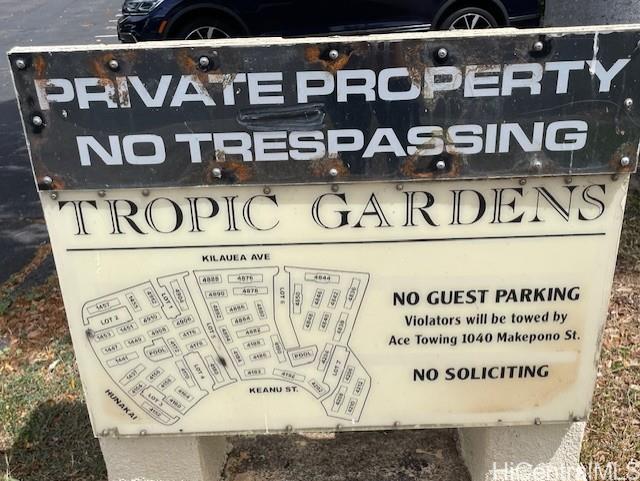 A rare opportunity to own a single-level, 3-bedroom, 2-bath townhouse in the highly desirable Tropic Gardens community. The home features a nice open courtyard that is fully fenced, creating a private outdoor space ideal for relaxing, entertaining, gardening, or enjoying the island breeze. Freshly painted and remodeled in 2018, removal of the popcorn ceiling, finished with laminate flooring, carpeting in the bedrooms only. Both the kitchen and bathrooms have been tastefully updated, blending clean finishes with everyday functionality. Convenience is a key highlight of this property. The front door entrance is directly from Kilauea Avenue, while the back door opens to Hunakai Street, where your assigned parking stall is located right at your doorstep—making daily routines and unloading groceries easy and efficient. Ideally situated at the intersection of Kilauea Avenue and Hunakai Street, the property is located directly across from Wilson Elementary School and within a well-maintained complex that includes two community swimming pool for residents to enjoy. Minutes away from Kahala Mall, restaurants, shopping centers, supermarkets, and more. Shown by appointments only. See today!