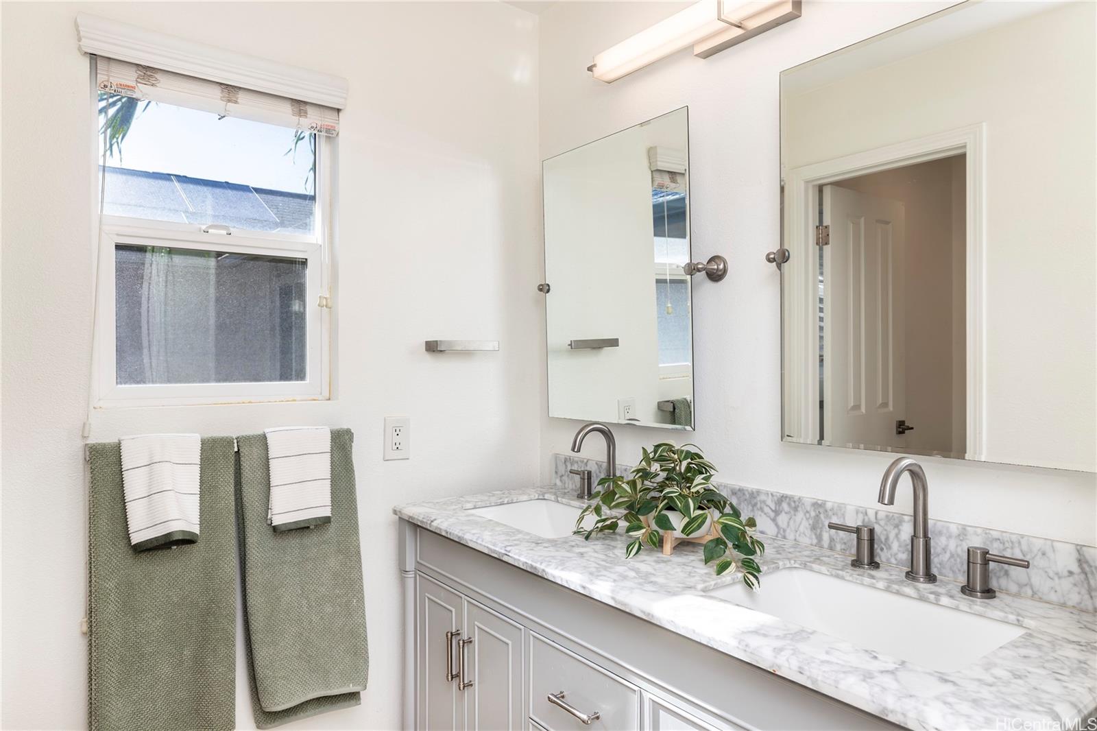 Immaculate 3 bed 2.5 bath with a ground floor den! An open and efficient floor plan flows seamlessly from kitchen to dining to living. Flooring throughout the home has been upgraded to luxury vinyl planks. A spacious, fenced in, yard presents the ideal setting to entertain family and friends. Stay cool on those warm summer months with central AC powered by 6 PV panels on net metering. Conveniently located minutes away from Wai Kai, Laulani Village Shopping Center, Costco, world class golf, and much more!