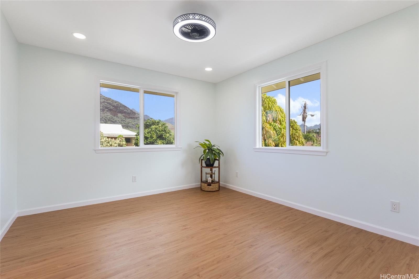 Beautiful brand-new 5-bedroom, 3-bath home in Maili offering flexible living options. The upper level features 3 bedrooms, 2 baths, and a full kitchen with stainless steel appliances. The lower level includes 2 bedrooms, 1 bath, and a wet bar, providing added flexibility for extended living arrangements. Parking accommodates up to 4 vehicles, with possible additional side parking. Conveniently located near Maili Elementary School, minutes to the beach, and a short drive to Ko Olina and Kapolei for dining and shopping. No HOA. Must see!