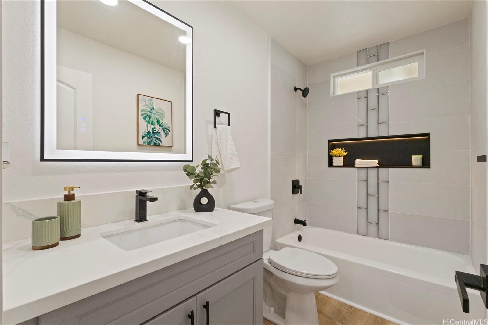 Beautiful Kalama Valley home comes with 4 bedrooms and 2 bathrooms. The main floor is 1,566 sq ft and the upstairs loft offers and additional 406 sq ft. This home has been tastefully upgraded with new luxury vinyl flooring throughout, new kitchen cabinets, and quartz countertops. The vaulted kitchen and dining room flow seamlessly to the open concept living room with tons of natural light from the large windows. The over 8,000 sq ft lot offers usable outdoor space that is perfect for entertaining. Enjoy all the benefits of living in Hawaii Kai with the top rated public schools, beautiful beaches, and close proximity to shopping.