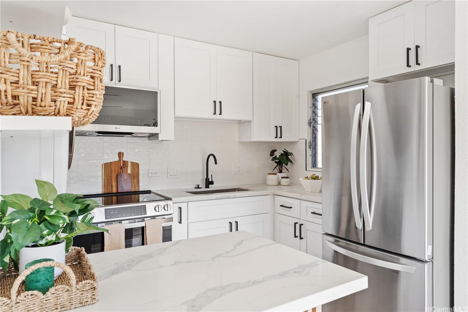 ウィンドワード・オアフのオアシスへようこそ。美しく改装された2ベッドルーム、1バスルームの住宅は、驚きの価格でありながら2台分の駐車スペースという貴重な特典もご用意しています。両ベッドルームの窓からコオラウ山脈の穏やかな景色を眺めながら目覚め、自然光がたっぷりと差し込む明るく風通しの良いリビングスペースをお楽しみください。住宅全体に行き届いたリフォームが施されたこの住宅は、温かみのある天然木のアクセント、特注のビルトインキャビネット、溝付き木製エンターテイメントウォール、ライトオーク調のビニールフローリング、クォーツカウンター、そして便利なフルサイズの洗濯機と乾燥機を備えています。改装されたバスルームには、タイル張りのバスタブとシャワーが一体となったデザインとモダンなLED照明が備わり、まるでスパのような爽やかな空間を演出しています。テンプルバレー・ショッピングセンターに近く、食事や買い物に便利。アフイマヌ・ディストリクト・パークにも近く、アウトドアを楽しむのに最適なロケーションです。ウィンドワード・オアフの中心で、単なるスターターホームではなく、ライフスタイルをアップグレードするのに最適な物件です。ぜひご自身の目でお確かめください。