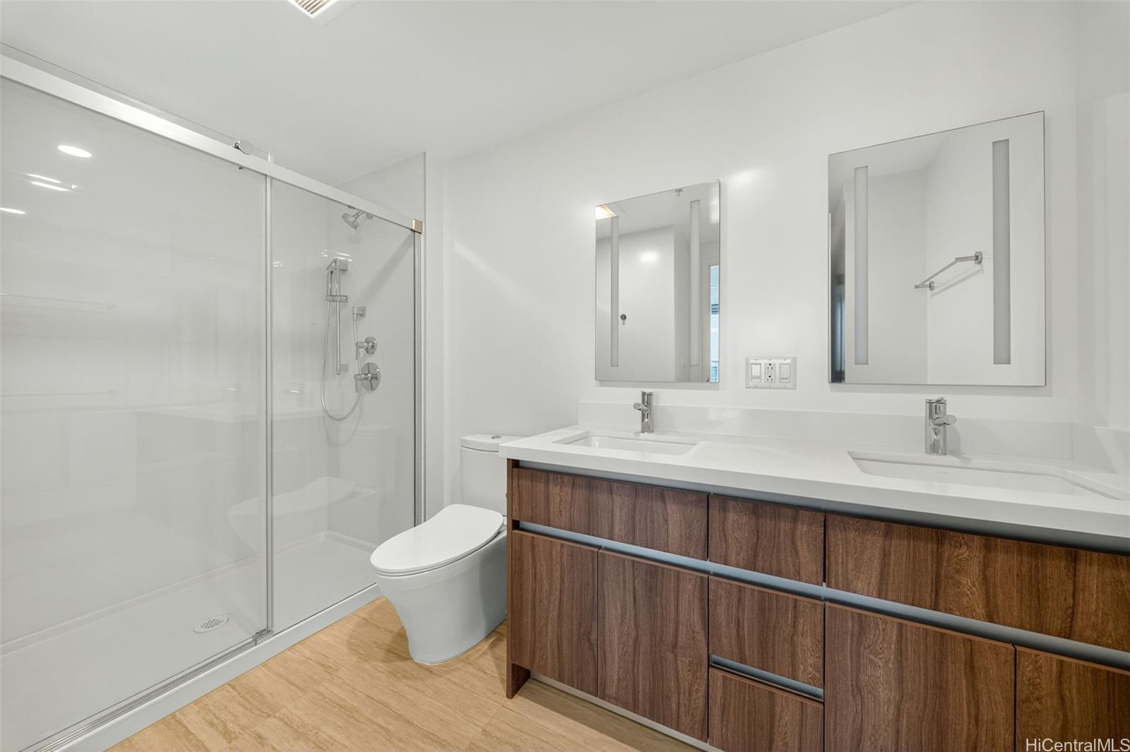 The Park on Keeaumoku is a thoughtfully designed new development that brings modern, comfortable living to the heart of a thriving community. Just minutes from Ala Moana Shopping Center, dining, and entertainment, everything you need is right outside your door. This corner residence offers the ocean views along with expansive floor-to-ceiling windows that fill the space with natural light. The open-concept layout features quartz countertops, luxury vinyl plank flooring in the living areas and kitchen, split AC in every room, and a private lanai to take in both city and ocean vistas. Enjoy resort-style living with exceptional amenities, including an infinity pool and spa, private BBQ pavilions, a movie theater, an indoor fitness center, yoga studio, sauna, and stylish clubrooms perfect for private gatherings.