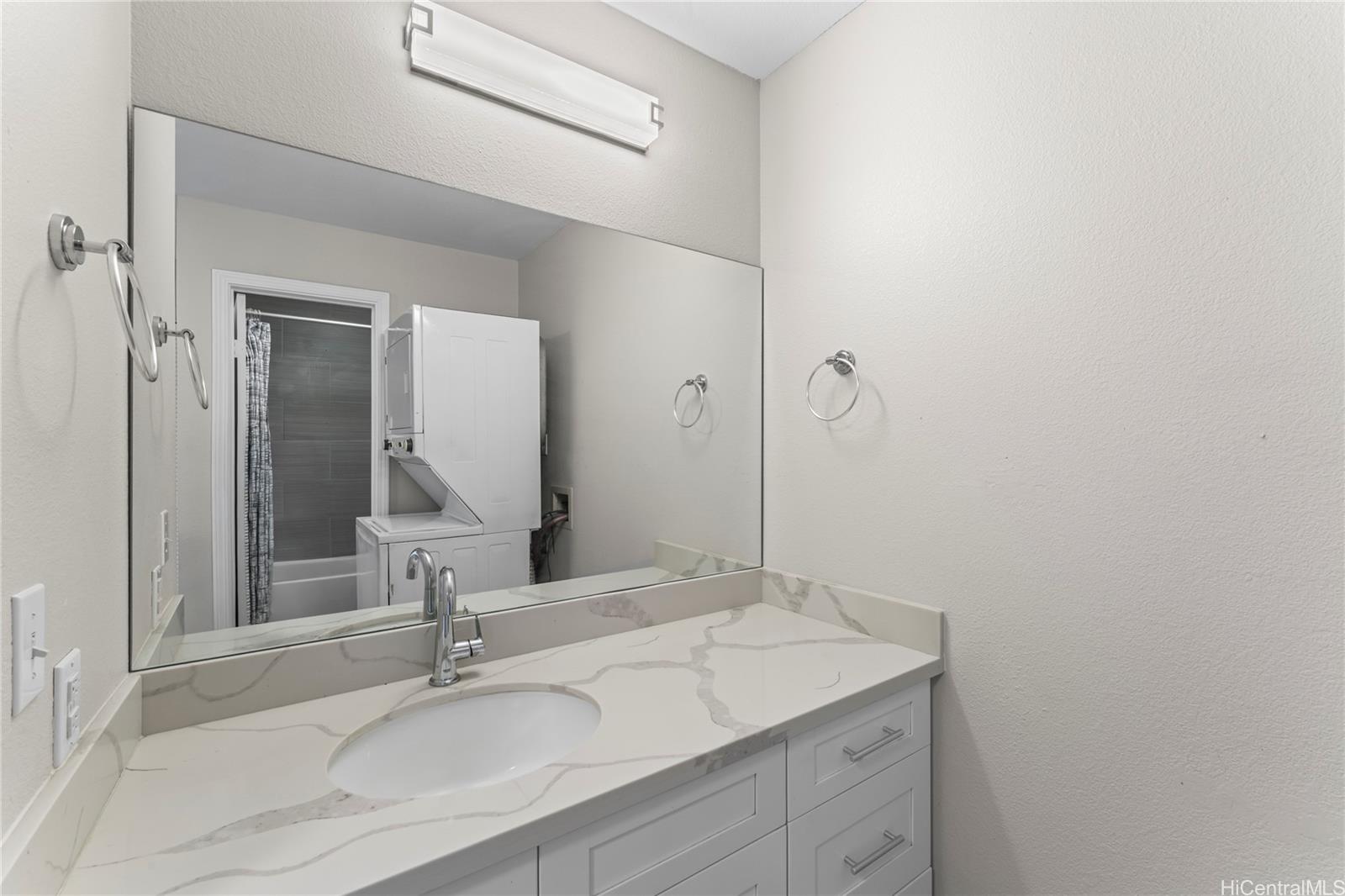 Welcome to Pearl Horizons, a highly desirable, pet-friendly community in the heart of Aiea. This beautifully and fully remodeled 2-bedroom, 1.5-bath with a washer and dryer in unit features a spacious floor plan with stunning views of Pearl Harbor and the mountains. Enjoy a recently renovated kitchen with quartz countertops, new cabinetry, and stainless steel appliances, along with modernized bathrooms featuring sleek vanities and updated countertops. Pearl Horizons offers resort-style amenities including a swimming pool, whirlpool, sauna, BBQ area, clubhouse, resident manager, and security patrol. Ideally located near Pearlridge Center, Waimalu Plaza, schools, freeway access, bus lines, and the Skyline rail station, with close proximity to Joint Base Pearl Harbor-Hickam. A biking trail around Pearl Harbor is just minutes away. Experience the perfect balance of island living and urban convenience.