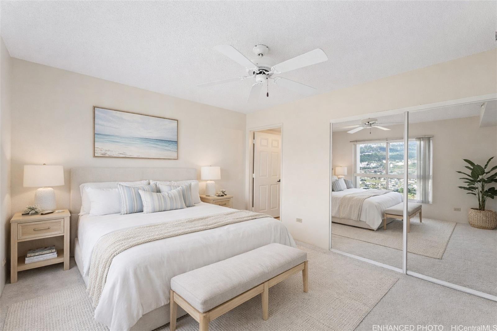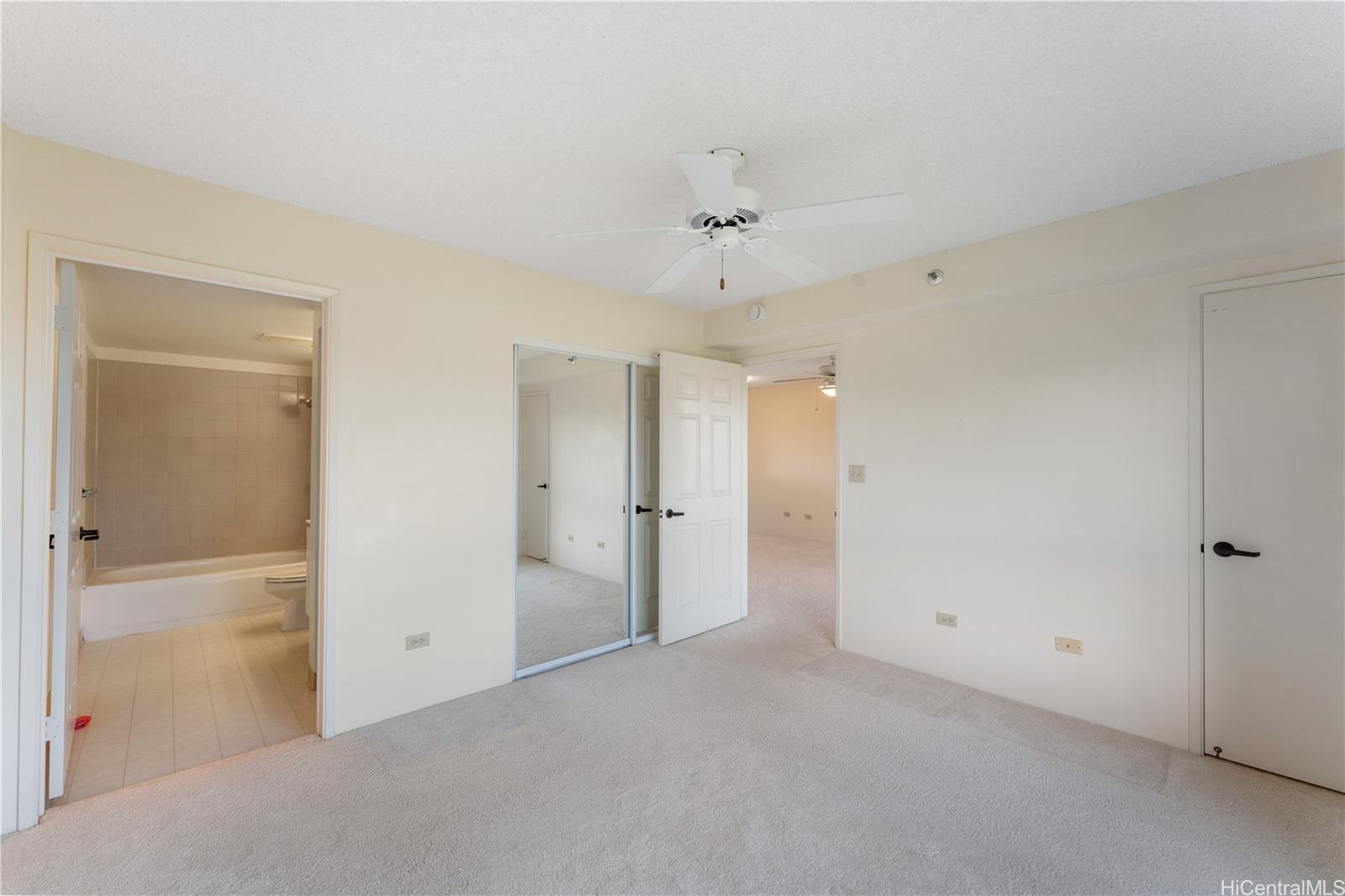 peaceful setting, and no direct afternoon sun—one of the most comfortable locations in the complex. Features include an open lanai with storage closet, stacked washer/dryer, fire sprinkler system, and two covered tandem parking stalls conveniently located near the elevator on the 3rd floor. A designated storage area on the 19th floor adds extra convenience. CCV4 is a pet-friendly building (with approval) and offers resort-style amenities including a swimming pool, BBQ's, recreation room, jogging/walking path, and car wash area. Centrally located in Salt Lake with easy access to H-1 freeway east and west, Honolulu airport, military bases, and Salt Lake Shopping Center. A great opportunity to update and customize to your taste. Unit conveyed As-Is.