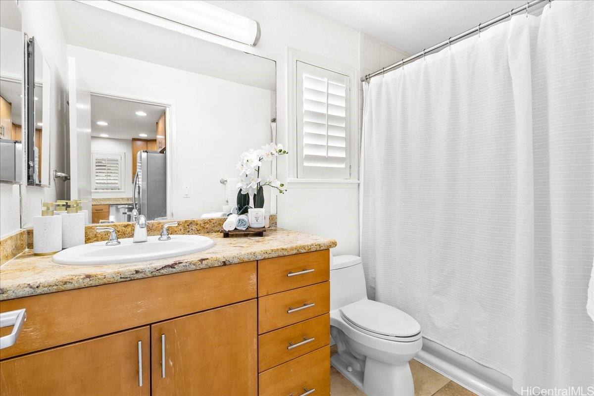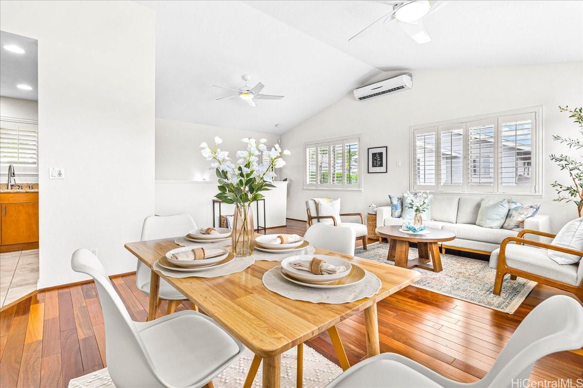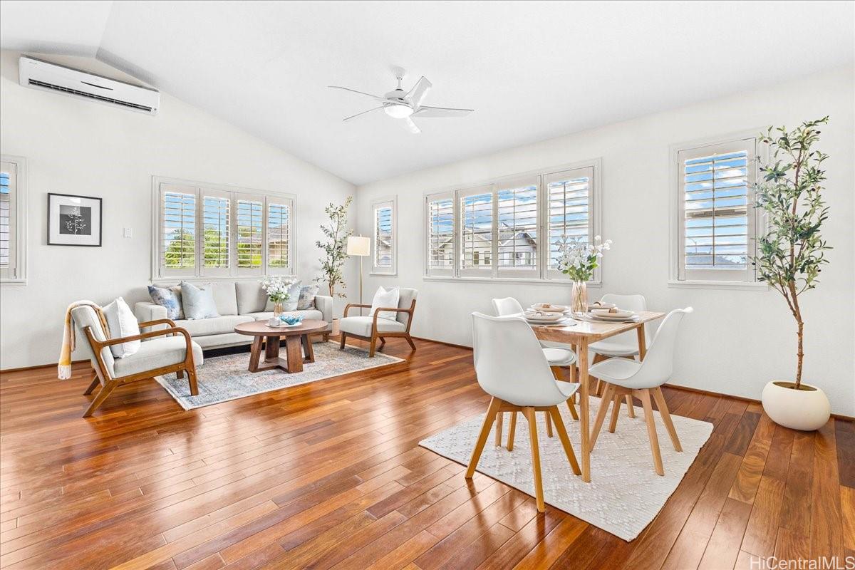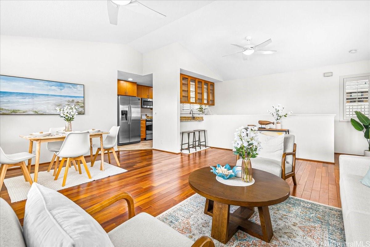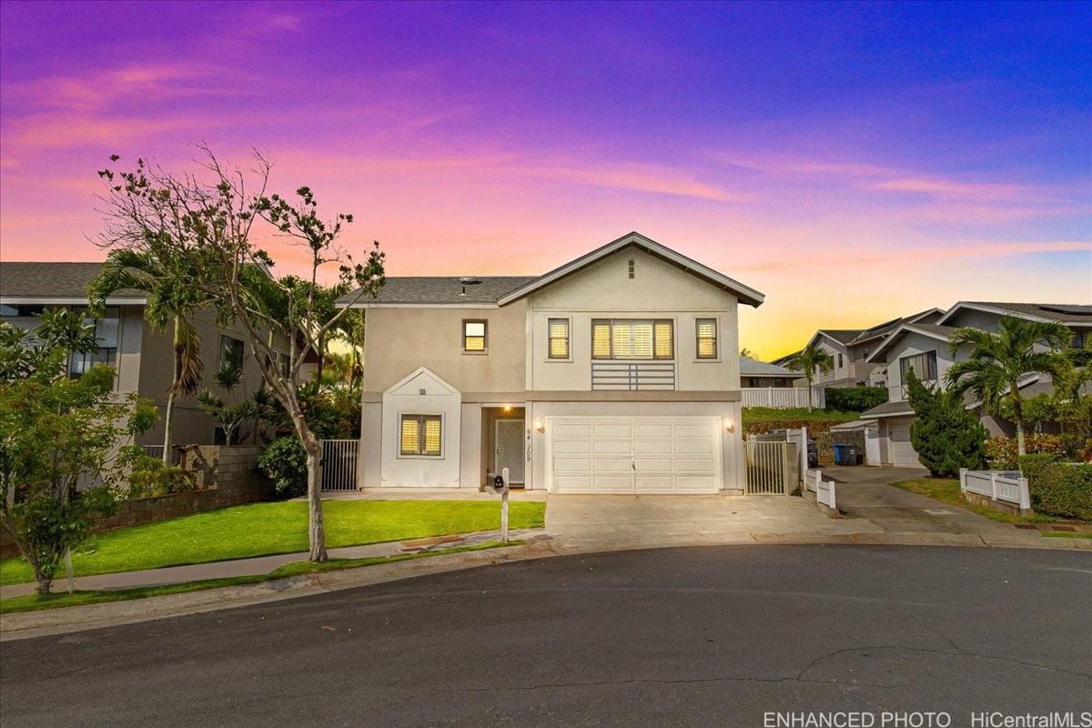 Experience elevated island living in this lovingly cared for 3-bedroom, 2-bath home tucked into a peaceful Royal Kunia cul-de-sac. This two-story retreat features a thoughtful layout with two bedrooms and a full bath on the main level for comfort and privacy. Upstairs, the primary bedroom opens to a bright kitchen with granite countertops, while the living room shines with beautiful hardwood floors and plantation shutters that bring in soft, airy light. Fresh, clean, and truly move-in ready, this home shows pride of ownership throughout. Outside, the beautifully landscaped and fully gated yard offers the perfect place to unwind after a long day- quiet, breezy, and made for easy island evenings. With Royal Kunia's prime location near shopping, dining, parks, schools, and freeway access, you get convenience wrapped in community charm. Homes like this don't linger - come see it, feel it, and imagine your next chapter here.