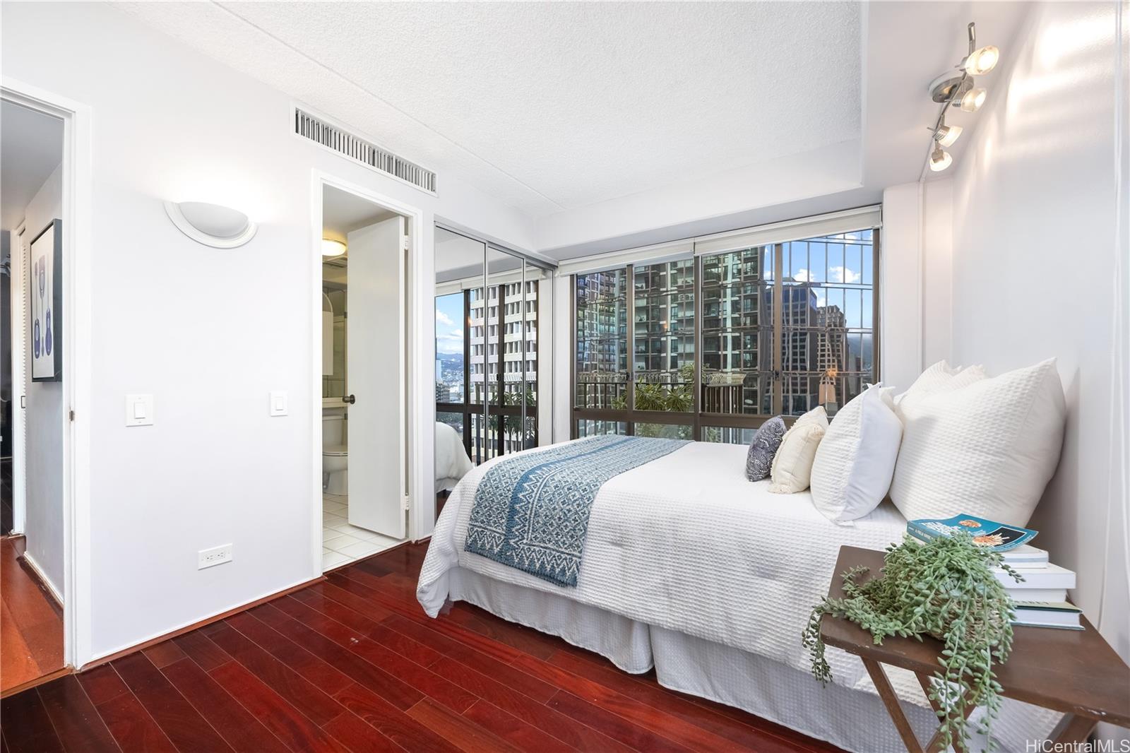 ホノルル・ダウンタウン中心部、ハーバースクエアへようこそ。タウンタワーの涼しいエリアに位置する2ベッドルーム、2バスルームの角部屋ユニットは、広々としたベランダから街と海の景色を一望できます。室内は床から天井まで届く大きな窓、美しいフローリング、そして最新設備を備えたキッチンが特徴です。両ベッドルームには専用バスルームが備わり、快適さとプライバシーを高めています。また、ユニット内にはクローゼットと収納ロッカーが備わっており、収納スペースも豊富です。この物件の大きなメリットは、オールインクルーシブの管理費で、セントラルエアコン、水道、電気、ケーブルテレビ、高速インターネットがカバーされていることです。セキュリティの高い建物には24時間体制のセキュリティと、最近改装されたプールやモダンなバーベキューデッキなど、充実したアメニティが備わっています。カカアコ、アロハタワー、クイーンズメディカルセンター、州議事堂、プリンス・クヒオ連邦ビル、そして一流大学までわずか数分という理想的な立地で、H-1号線やニミッツ・ハイウェイへのアクセスも良好です。駐車場は指定されていませんが、建物内に駐車スペースがございますので、お気軽にお申し付けください。メトロホノルルで便利で高品質な暮らしを実現できる絶好の機会です。