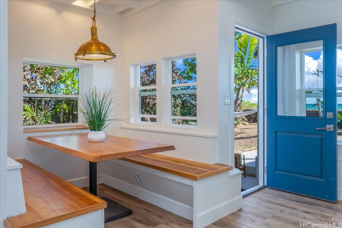 **エヴァビーチでビーチフロントの楽園を発見!** 2020年に再建されたこの3ベッドルーム、2バスルームの住宅は、細部までこだわって改装され、比類のないオーシャンフロントライフスタイルを提供します。息を呑むような海とダイヤモンドヘッドの景色を楽しみながら、ビーチに直接アクセスでき、カヤックやサーフボードなどのビーチ用品をすべて収納できる広々としたガレージがあります。この宝石のような物件のあらゆるディテールは、モダンな生活のために厳選されており、エレガントなクォーツのカウンタートップ、トレンディな仕上げ、巨大なサーモダー6口コンロとそれに合うレンジフードを備えたシェフのキッチンを備えています。さらに、カスタムメイドのランドリーシュートにより、毎日の暮らしが楽になります。心地よい波の音で目覚め、魅力的な砂浜に足を踏み入れ、屋根付きのベランダから素晴らしい夕日を満喫してください。360エヴァビーチカントリークラブとプウロアコミュニティビーチパークから歩いてすぐの場所にあり、エヴァの素晴らしいアメニティやショッピングオプションにも簡単にアクセスできます。最高級のビーチフロント リビング。オアフ島の海岸沿いで最高の価値を提供します。お見逃しなく! 2 枚の写真が強化されています。
