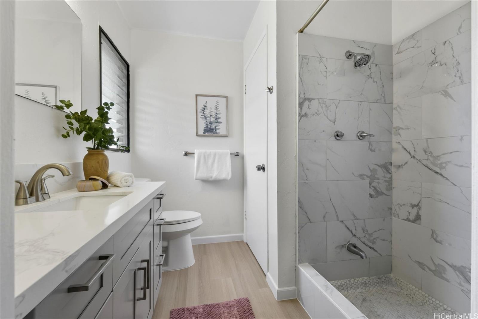 Recently updated, featuring quartz countertops, solid wood cabinetry, a new shower, toilets, sinks, vinyl flooring, fresh paint, modern light fixtures throughout, and brand new appliances. Situated in the sought-after Tropicana Village in Aiea, opposite Pearl Country Club and just minutes from Pearlridge Mall. This 3-bedroom, 2.5-bath townhome delivers an ideal combination of comfort, style, and convenience with separate living and dining areas, 2 storage spaces, an oversized 2-car garage, plus additional 2-3 car driveway parking. Generous lanai ideal for morning coffee or evening unwinding. Excellent location provides convenient access to shopping, restaurants, parks, schools, major highways, both on the Honolulu or west side.