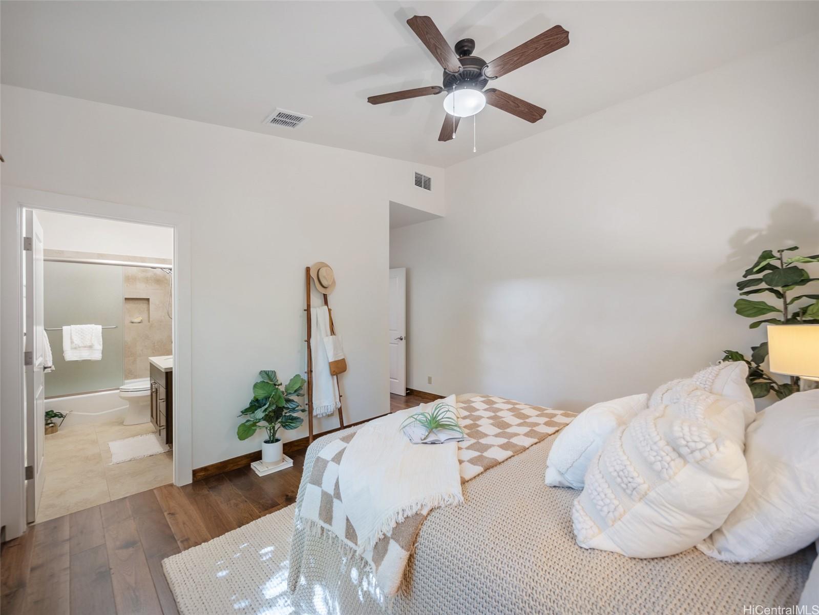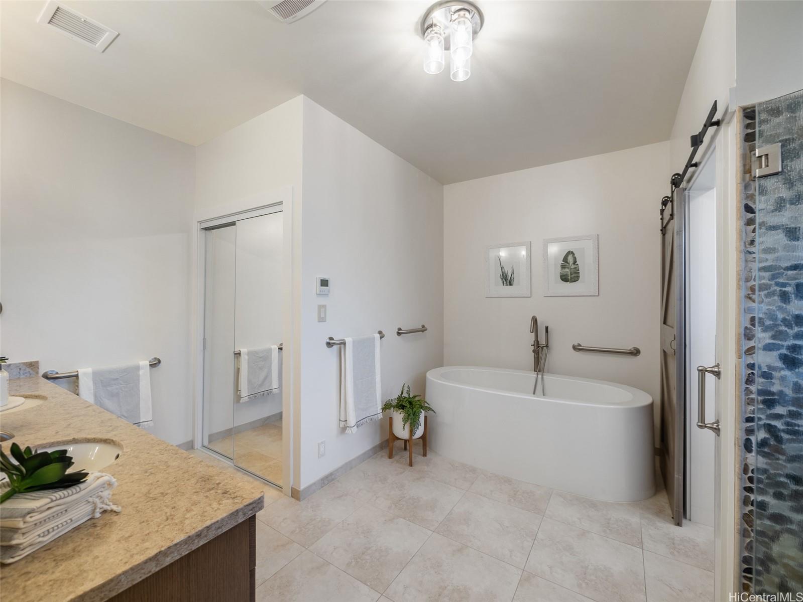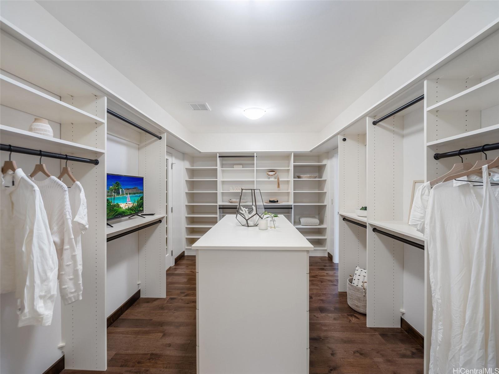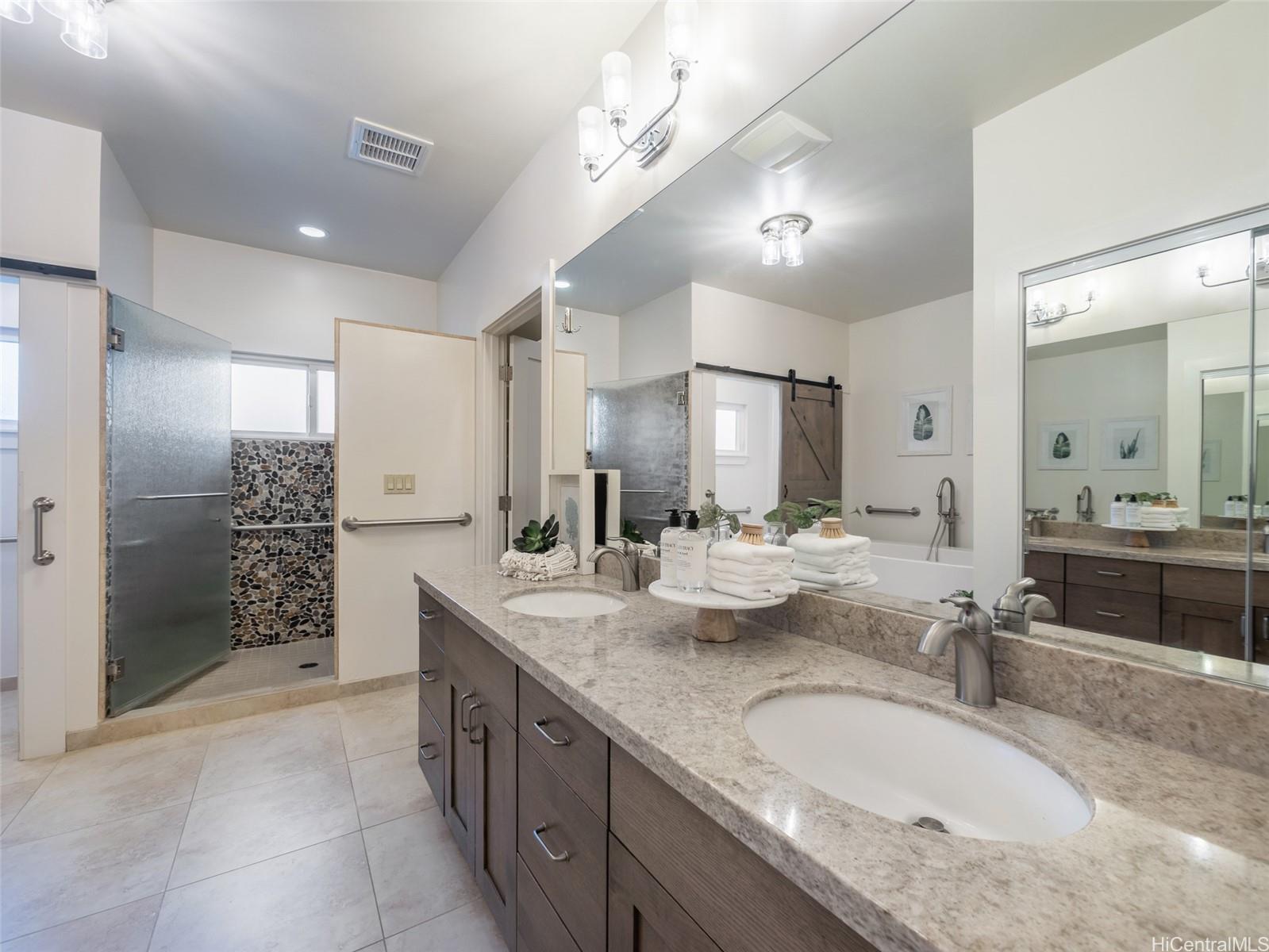 Set on a quiet street, this newer single-level home offers a rare combination of modern construction, thoughtful design, and exceptional livability. Built in 2016, homes of this vintage, especially all on one level are seldom available in Kahala, making this offering particularly distinctive. The residence features 3 generously sized bedrooms, each with its own ensuite bath, plus an additional half bath for guests. High ceilings and well-proportioned rooms create an airy, open feel, while the spacious layout offers excellent separation of spaces and a seamless indoor/outdoor flow. Designed for modern island living, the home includes split-zone air conditioning in every room and an owned PV system. The primary suite is a true retreat with a spacious walk-in closet and a large bathroom featuring both a soaking tub and separate shower. Living and entertaining areas open to a large deck, inviting tiled pool, and private landscaped yard. With its single-level design and newer construction, this home offers long-term comfort in one of O‘ahu’s established neighborhoods.