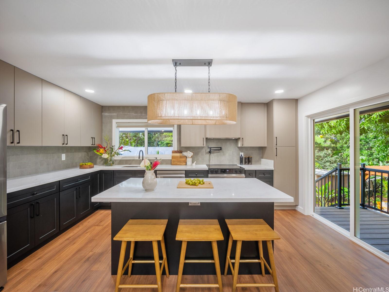 Discover the ultimate opportunity for multigenerational living or savvy investing with this fully renovated, three-unit property in the heart of Pearl Ridge. Thoughtfully designed for flexibility, the home features a spacious 3-bedroom, 2-bathroom unit upstairs, a 3-bedroom, 1-bathroom unit downstairs, and a separate studio—offering endless possibilities for extended family, rental income, or a combination of both. Nestled at the end of a quiet cul-de-sac, this property offers unparalleled privacy, backing up to a lush, jungle-like backyard with no rear neighbors. Imagine relaxing in your own tropical retreat, complete with a charming gazebo—your personal oasis awaits. Despite its serene setting, this home is just minutes away from Pearl Ridge Shopping Center, hospitals, and easy freeway access, blending convenience with tranquility. Whether you're seeking a versatile family compound or a prime investment opportunity, this remarkable property checks all the boxes. Don’t miss your chance to own this hidden gem!