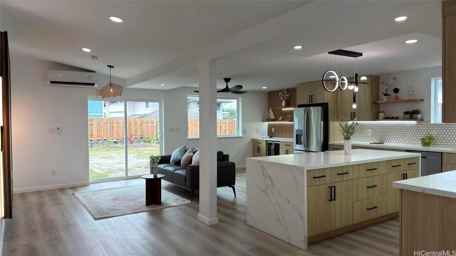 閑静な住宅街に位置する、最近改装された一戸建て住宅。モダンですぐに入居できる生活環境をご提供します。細部にまでこだわったリフォームにより、スタイルと機能性がさらに向上し、実用的な間取りと豊富な自然光が調和しています。広々とした庭は、屋外での暮らしやエンターテイメントに最適です。ウィンドワード・シティ・ショッピングセンター、レストラン、学校、主要道路にも近く、便利な立地です。税務記録によると、居住面積は948平方フィート(約948平方フィート)です。囲い付きのベランダは約360平方フィート(約360平方フィート)追加され、合計使用可能面積は約1,308平方フィート(約1,308平方フィート)となります。この住宅は現所有者によって最近改装されました。すべての情報は、購入者と購入者代理人にご確認ください。