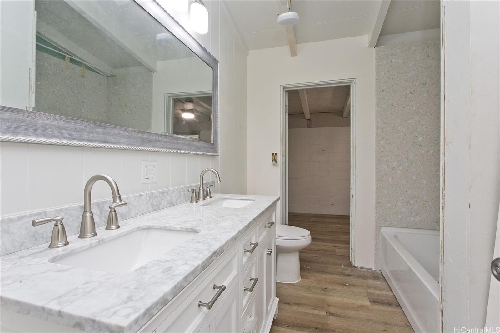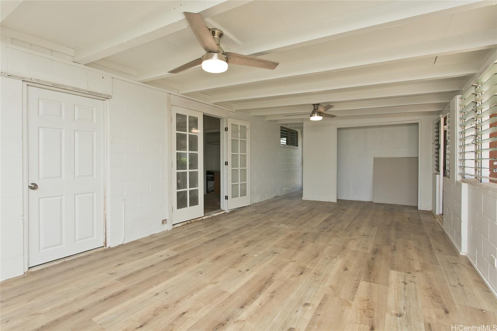this uniquely spacious 4-bedroom, 3-bath home offers versatile living ideal for multigenerational households. This home features two separate washer/dryer hookups for added convenience. The extra-large covered recreation area/room with ensuite full bathroom is perfect for gatherings, guests, or a large den/home office/keiki play space. A fenced yard provides privacy (or pets), while the newly installed garage door allows for flexible use as additional living space, recreation area or covered parking. Conveniently located near sandy beaches and turquoise waters, you'll have easy access to swimming, surfing and year-round fun. This home offers both comfort and the best of the island lifestyle you've been dreaming of. Sq ft does not match tax records.