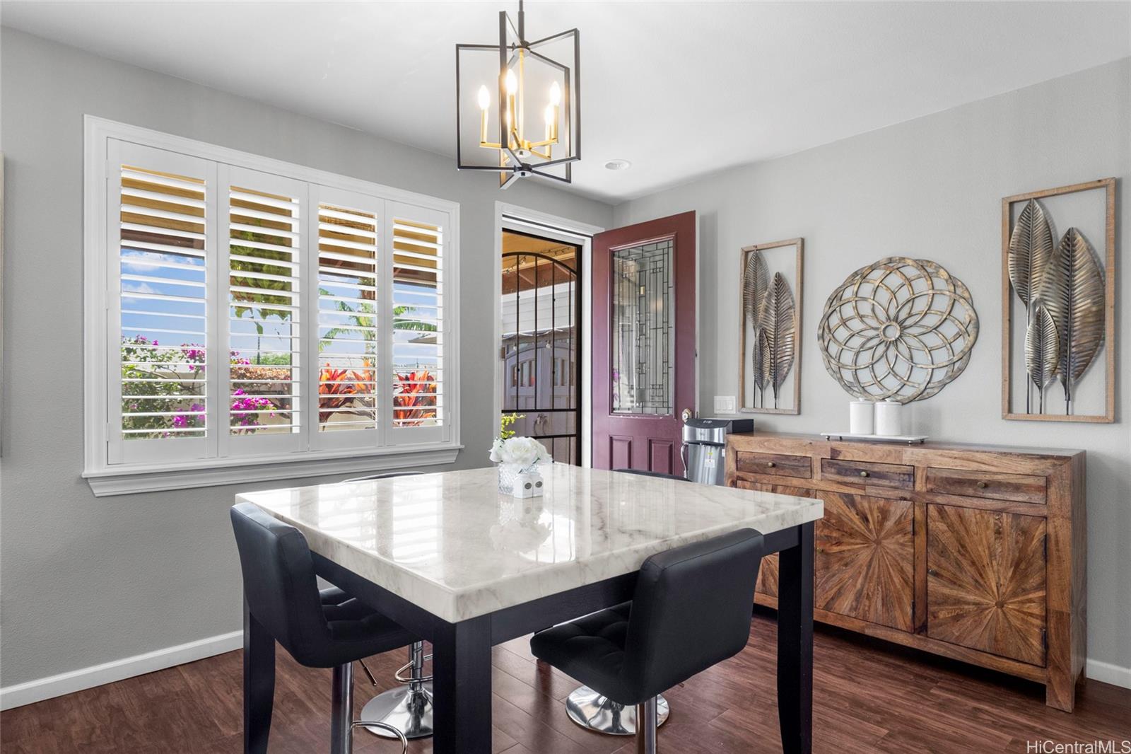 人気のククナ・アット・メハナ・コミュニティに位置する、美しく手入れされた3ベッドルーム、2.5バスルームの住宅です。カポレイの学校、ショッピング、レストランに近い静かな袋小路に位置しています。各部屋にスプリットエアコン、階下にはビニール製の板張りの床、階上には新しいカーペットが敷かれています。オープンコンセプトのキッチンにはステンレス製の家電が備え付けられ、美しく改装されたバスルームはモダンな雰囲気を醸し出しています。家全体に設置されたプランテーションシャッターは、スタイリッシュさとエネルギー効率を高め、ソーラーパネルは光熱費の削減に役立ちます。ビニールフェンスで囲まれた裏庭はペットの飼育やゲストとの交流に最適で、住宅に隣接した便利なゲスト用駐車場も完備しています。