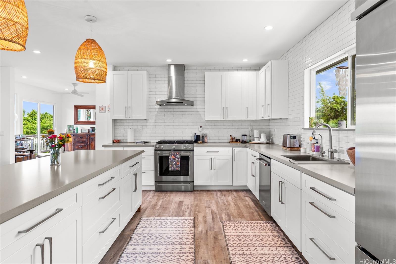 ププケアのサンセットヒルズ地区に佇む、ノースショア屈指の邸宅。ワンランク上のアイランドライフの真髄を体現しています。オアフ島屈指の高級かつプライベートな隠れ家的エリアで、雄大なオーシャンビュー、プライバシー、そして揺るぎない価値が融合する、由緒ある物件を所有できる稀有な機会です。日の出から日没まで、息を呑むような太平洋の絶景がカエナ岬まで広がります。平屋建てのこの邸宅は、すべての部屋が海に面して設計されており、どの空間からも果てしなく続く青い水平線、涼やかな貿易風、そして一日中たっぷりと差し込む自然光が眺められます。広々としたラナイが家の主役となり、屋内と屋外がシームレスに繋がっています。楽しいひとときにも、静かなひとときにも最適なラナイには、ダイニングテーブルを設えた専用の屋外ダイニングエリアがあり、周囲を熱帯植物が囲み、プライバシーを確保しながらドラマチックな海の景色を織り成しています。この広々とした屋外のリビング スペースは、家の自然な延長となり、夕暮れ時のディナー、朝のコーヒー、そして一年中楽しめるノース ショアのライフスタイルに最適です。