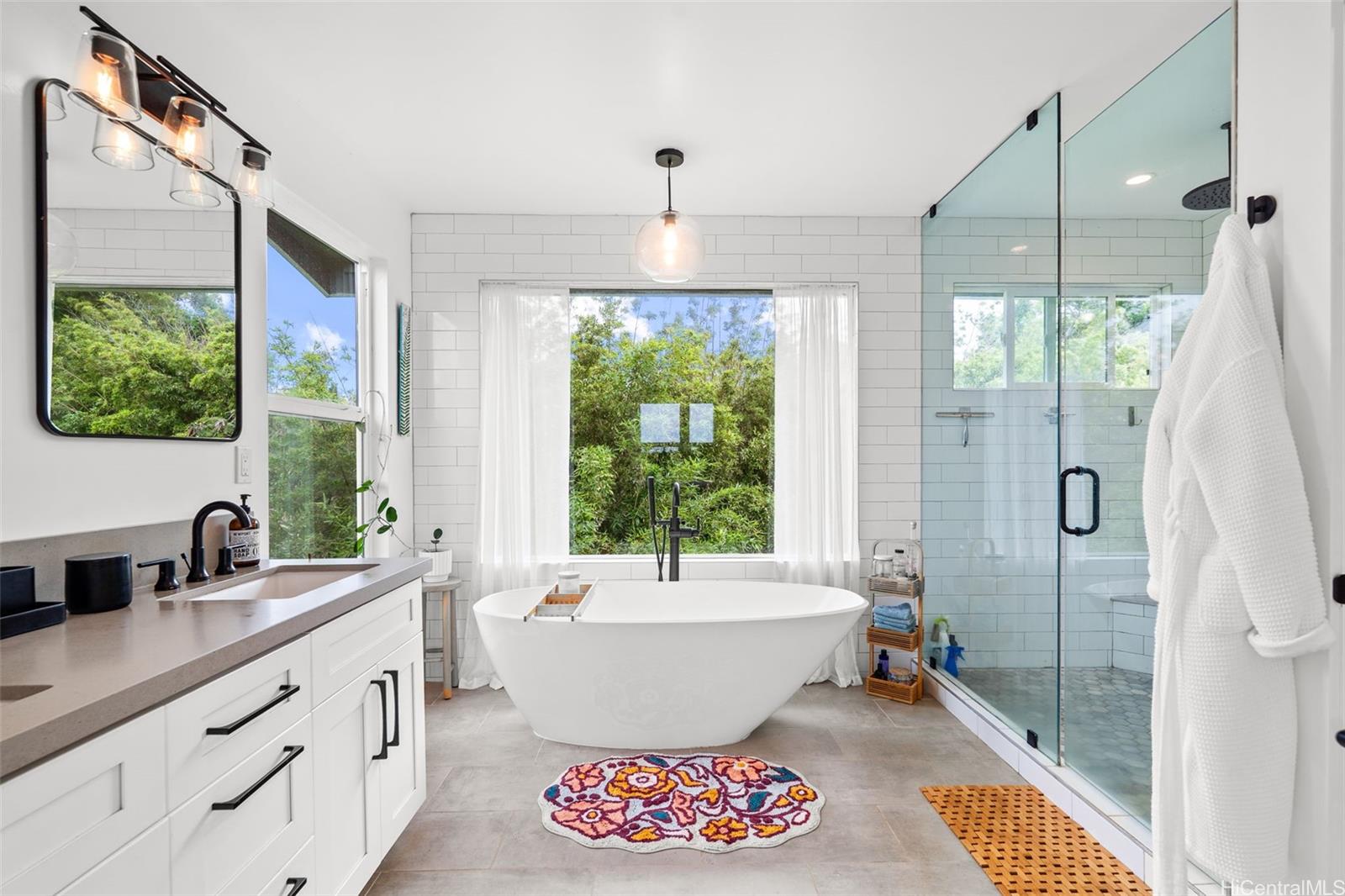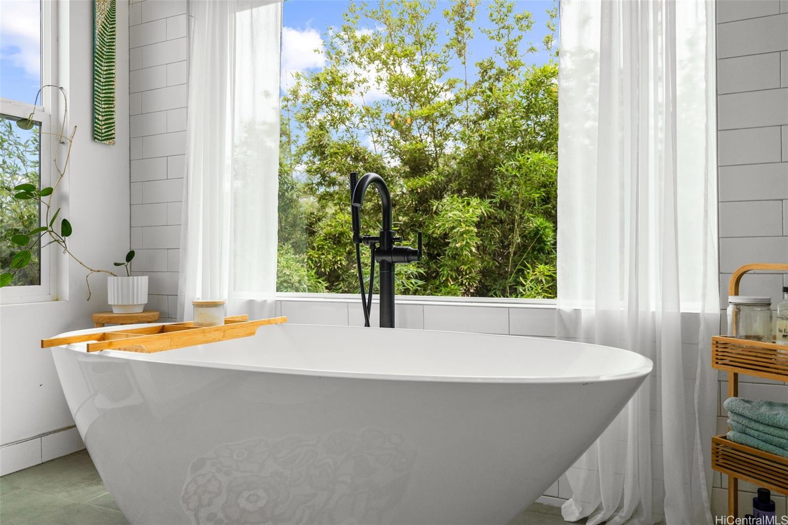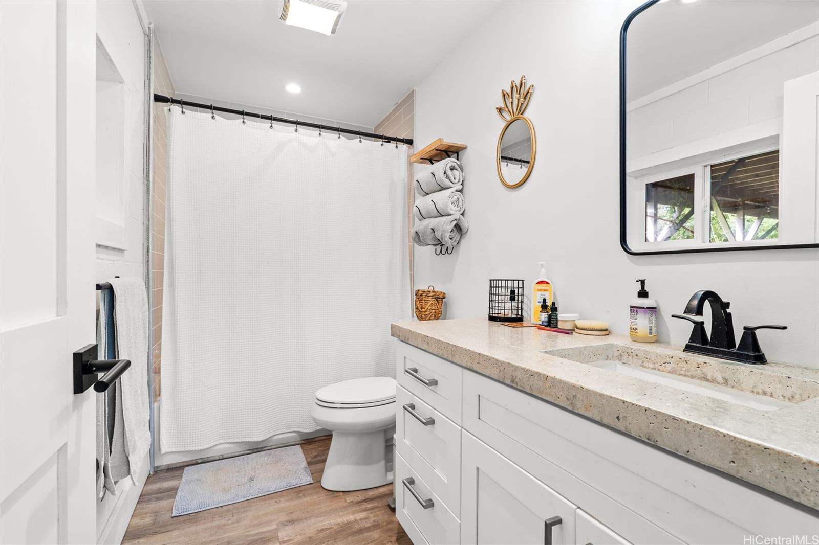 A large wraparound lanai anchors the home, creating a seamless indoor-outdoor connection. Ideal for entertaining or quiet moments alike, the lanai features a dedicated outdoor dining area with a full dining table, surrounded by integrated tropical planting that enhances privacy while framing the dramatic ocean backdrop. This expansive outdoor living space becomes a natural extension of the home—perfect for sunset dinners, morning coffee, and year-round enjoyment of the North Shore lifestyle.