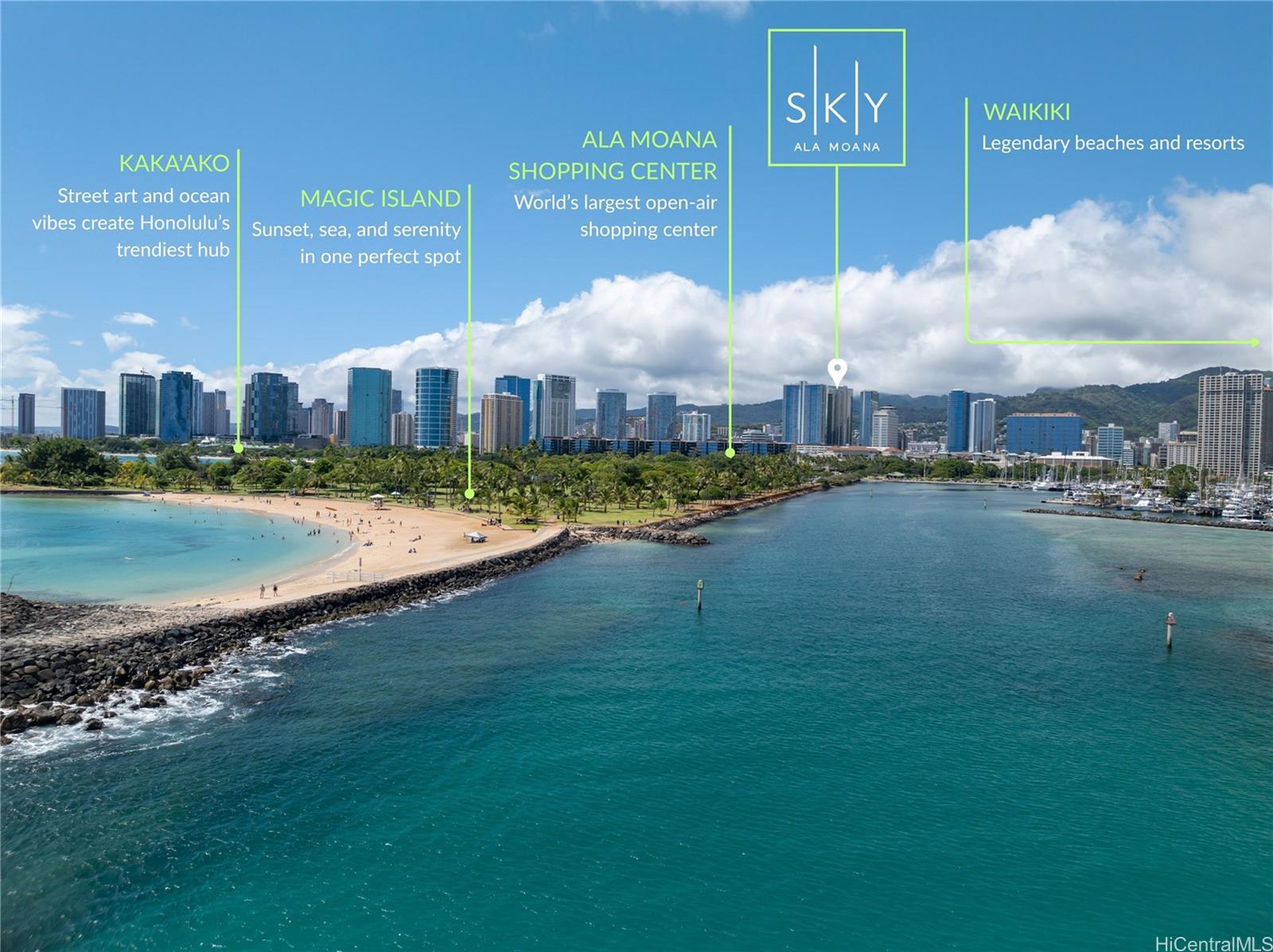 大変人気のスカイ・アラモアナ・ウエストタワーで、究極のアイランドライフをご体験ください。この最高級の「05」スタックレジデンスは、単なる住まいではありません。太平洋、マジックアイランド、活気あふれる街の灯りを一望できる、ホノルルの美しさを最前列で堪能できる空間です。2023年築のこのユニットは、洗練されたモダンなデザインで、洗練されたオープンコンセプトのレイアウト、エンジニアードウッドのオーク材キャビネット、ボッシュとエレクトロラックスの高級家電を備えたシェフ仕様のキッチンを備えています。階下に楽園があるのに、なぜ家を離れる必要があるのでしょうか?レジデンスには、5つ星リゾートに匹敵する53,900平方フィートの広大なアメニティデッキ「スカイテラス」へのアクセスが含まれています。週末は温水ラッププールで過ごしたり、サウナ/スチームルームでくつろいだり、プライベートBBQカバナや「エンチャンテッドガーデン」でエンターテイメントを楽しんだりできます。フードランドファームとアラモアナセンターがすぐそばにあるこの物件は、まさにあなたが待ち望んでいた、気楽で贅沢なライフスタイルを実現できる物件です。屋根付き駐車場1台分と快適なスプリットエアコンも完備しています。