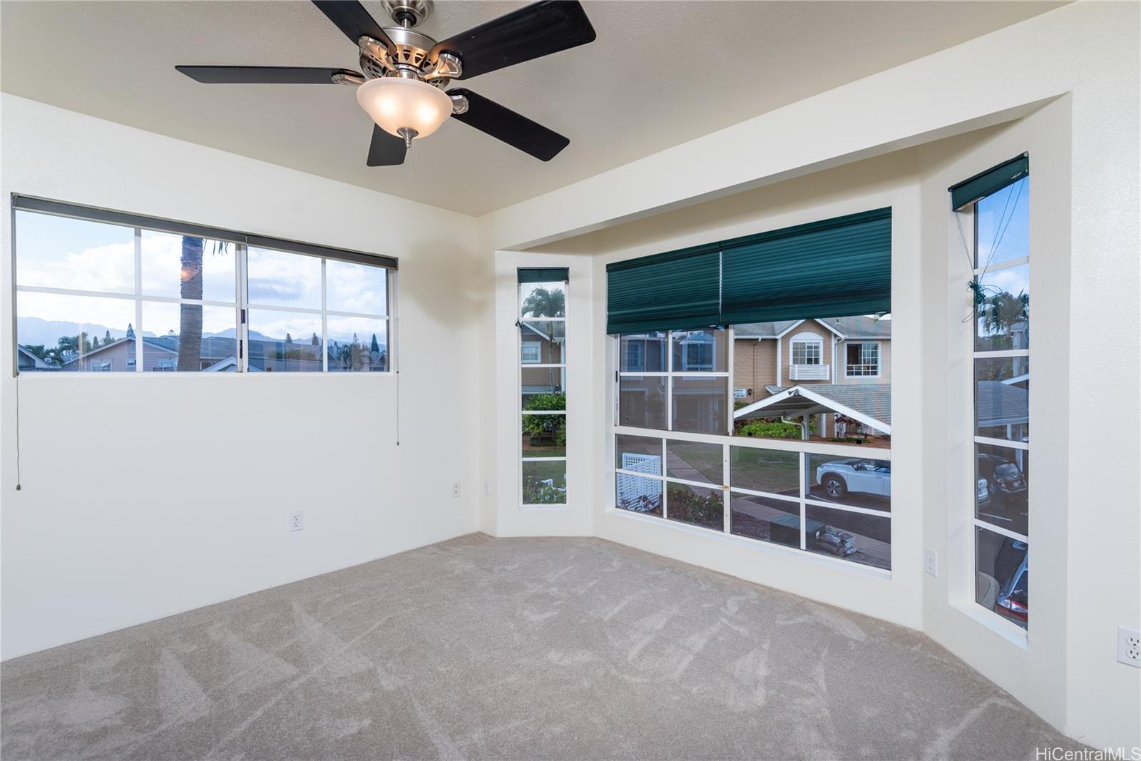 Huge price reduction! Rare 3 bedroom, 2 full bath, 1,029 sq. ft. condo at Village on the Green in Waikele. In addition, this 2nd floor unit offers a large 93 sq. ft. lanai with tree top views. Your 2 assigned, parking stalls, one covered, one open are located very close to your doorstep. This home has been newly painted, with brand new carpet throughout. New light fixtures an fans have been installed. AC in living room. All this in the planned community of Waikel with it's golf course, Outlet Mall, restaurants and parks.
