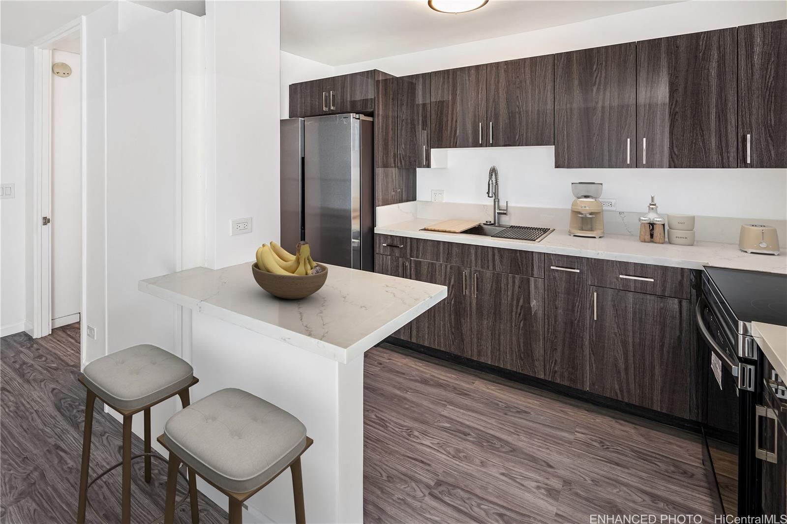 広々とした1ベッドルーム、1バスルームのユニット。全面的にアップグレード済み。屋根付き駐車スペース1台分とセントラルエアコン付き。電気代は管理費に含まれているため、非常にお得で月々のコストを抑えられます。モダンな仕上げが施された、よく管理された建物は、エンドユーザーにも投資家にも最適です。すぐに入居可能です。2026年2月1日午後2時~5時、オープンハウスを開催します。