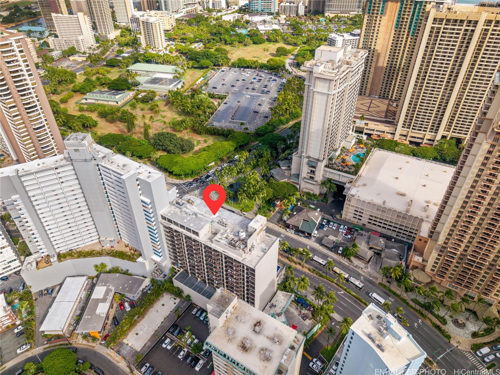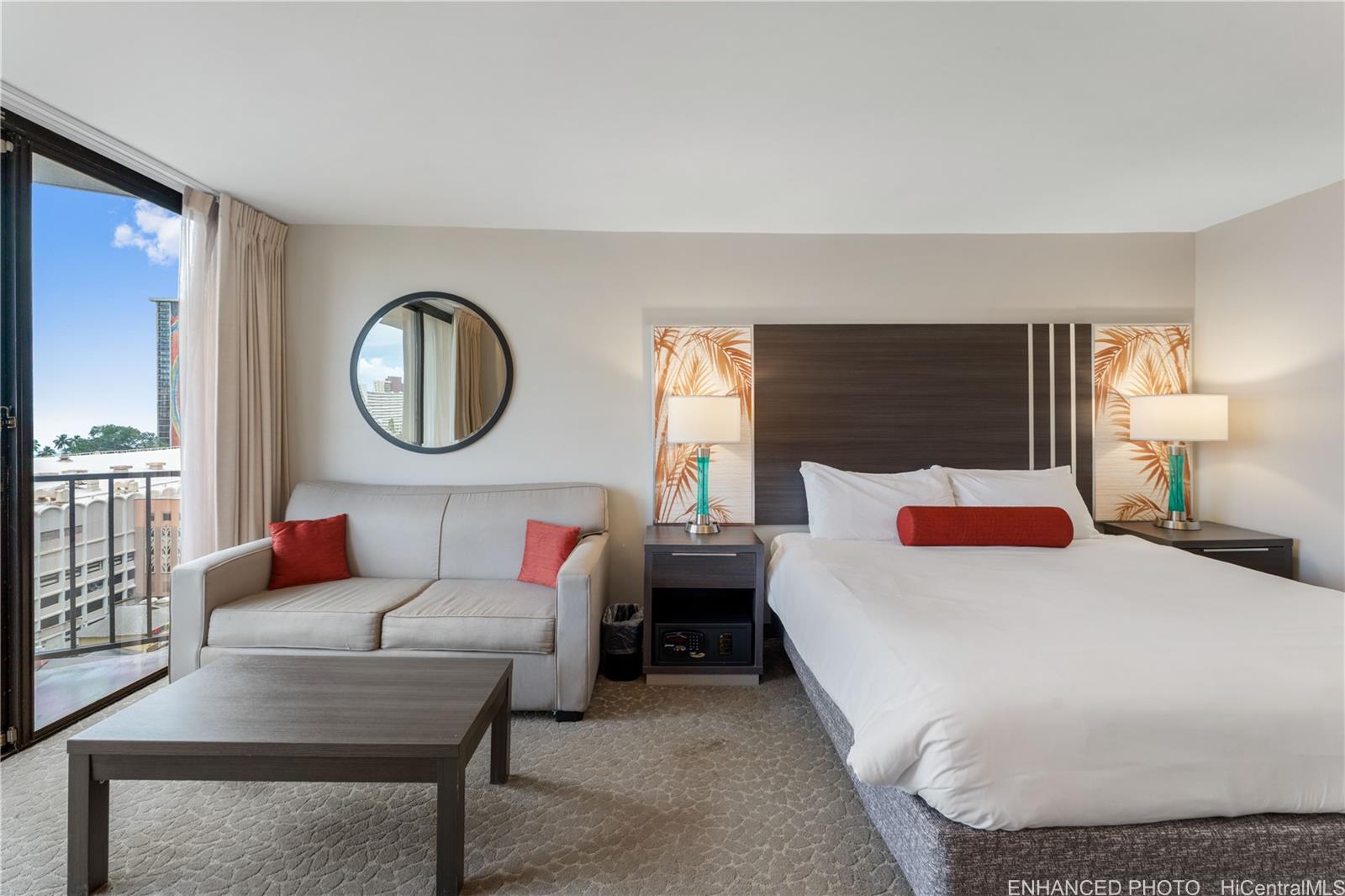 Unit 816 at the Palms at Waikiki offers a rare opportunity to own a legal, turnkey short-term rental with strong income history and deeded parking. One of the larger studio layouts in the building, this fully renovated unit is ready for immediate use and can be self-managed or placed into the hotel rental pool. The southeast-facing orientation captures views of Diamond Head, ocean, city Skyline, which consistently appeals to guests and supports strong nightly rates. The unit has a proven performance record, generating approximately $63,000+ in annual gross income with a 4.96-star rating, over 80 reviews, and roughly 90% occupancy. Renovated in 2020 as part of the hotel refresh program, the unit features custom upgrades that set it apart from standard inventory. Owners and guests enjoy access to quaint hotel amenities including a pool, BBQ area, fitness center, laundry facilities, front desk services, bell service, and 24-hour security. Located at the gateway to Waikiki and just blocks from Kahanamoku Beach, shopping, dining, and world-class resorts, this property offers flexibility for continued rental income, personal use, or future resale of a high-demand condotel with parking.