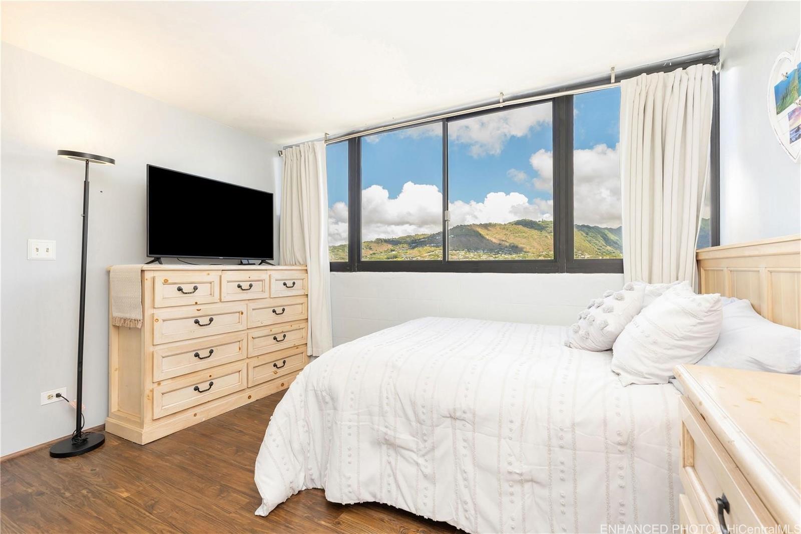 Beautifully renovated split-level condo in the heart of Moiliili. This stunning split-level 1-bedroom, 1-bath end unit offers style, comfort, and convenience in a boutique secured building. Enjoy mountain views, a peek-a-boo glimpse of Diamond Head, and sweeping city views from your private space. Inside, you’ll find amazing renovations throughout — including a modern kitchen, updated bathroom, and new flooring. The unit also features in-unit washer and dryer, ample in-unit storage closet, and one covered parking stall. Perfectly located near popular restaurants, freeway access, the University of Hawaii at Manoa, Waikiki, and beautiful beaches, this home blends vibrant city living with the warmth of a close-knit neighborhood.