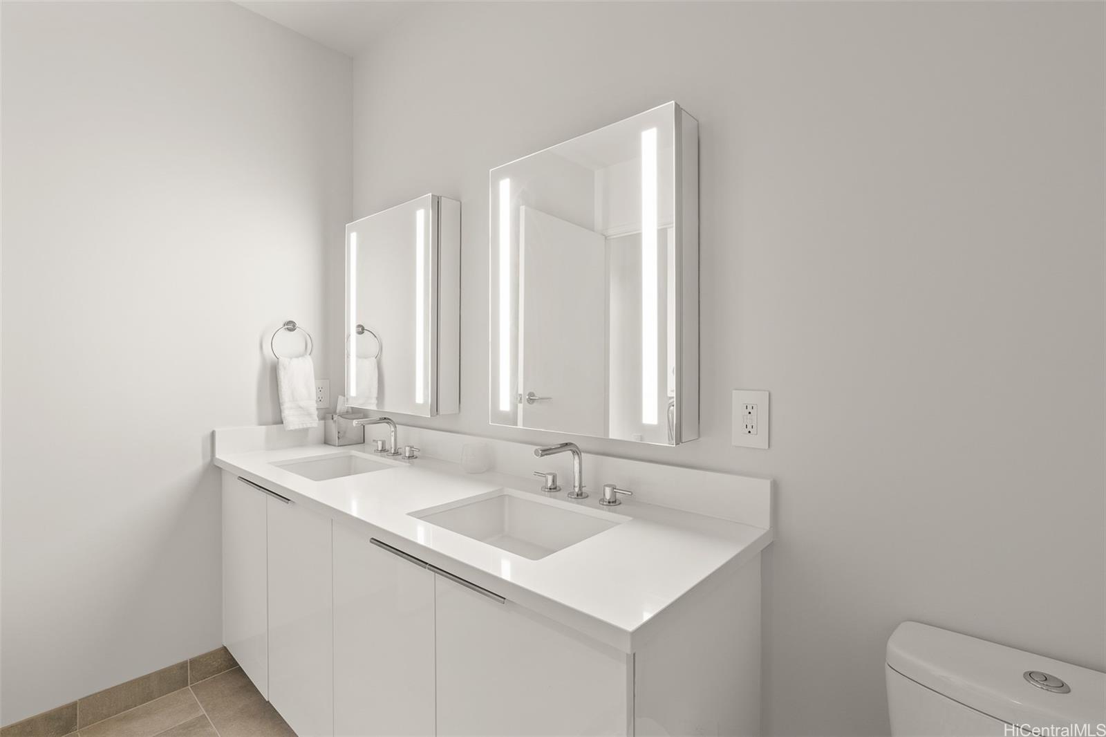 ダイヤモンドヘッド側に位置するオーシャンビューの「04」スタックユニット。ペントハウスには床から天井まで10フィートの窓があり、開放感を演出しています。4階駐車スペース(P4-069)の隣にはEV充電器付きの収納ユニットが設置されています。もう一つの駐車スペースはMezz.(PM-026)なので、出入りも簡単です。リビングエリアから全寝室まで、アップグレードされたエンジニアードウッドフローリングが敷かれ、窓は電動カーテンで全面カバーされ、メインバスルームにはTOTOウォシュレット、全クローゼットにはカリフォルニアクローゼットシステムが設置されています。Ae'oは、ホノルルで最も人気の高い新興住宅地の一つ、カカアコ、ワードビレッジに位置し、アラモアナショッピングセンターにもほど近い場所にあります。アラモアナビーチパーク、マジックアイランド、ショッピングセンター、劇場、様々なレストランも徒歩圏内です。建物には2つのプール、バーベキューパビリオン、ジム、サウナ、映画館、ゲストスイート、ドッグプレイエリア、プレイグラウンドなど、一流のアメニティが揃っています。