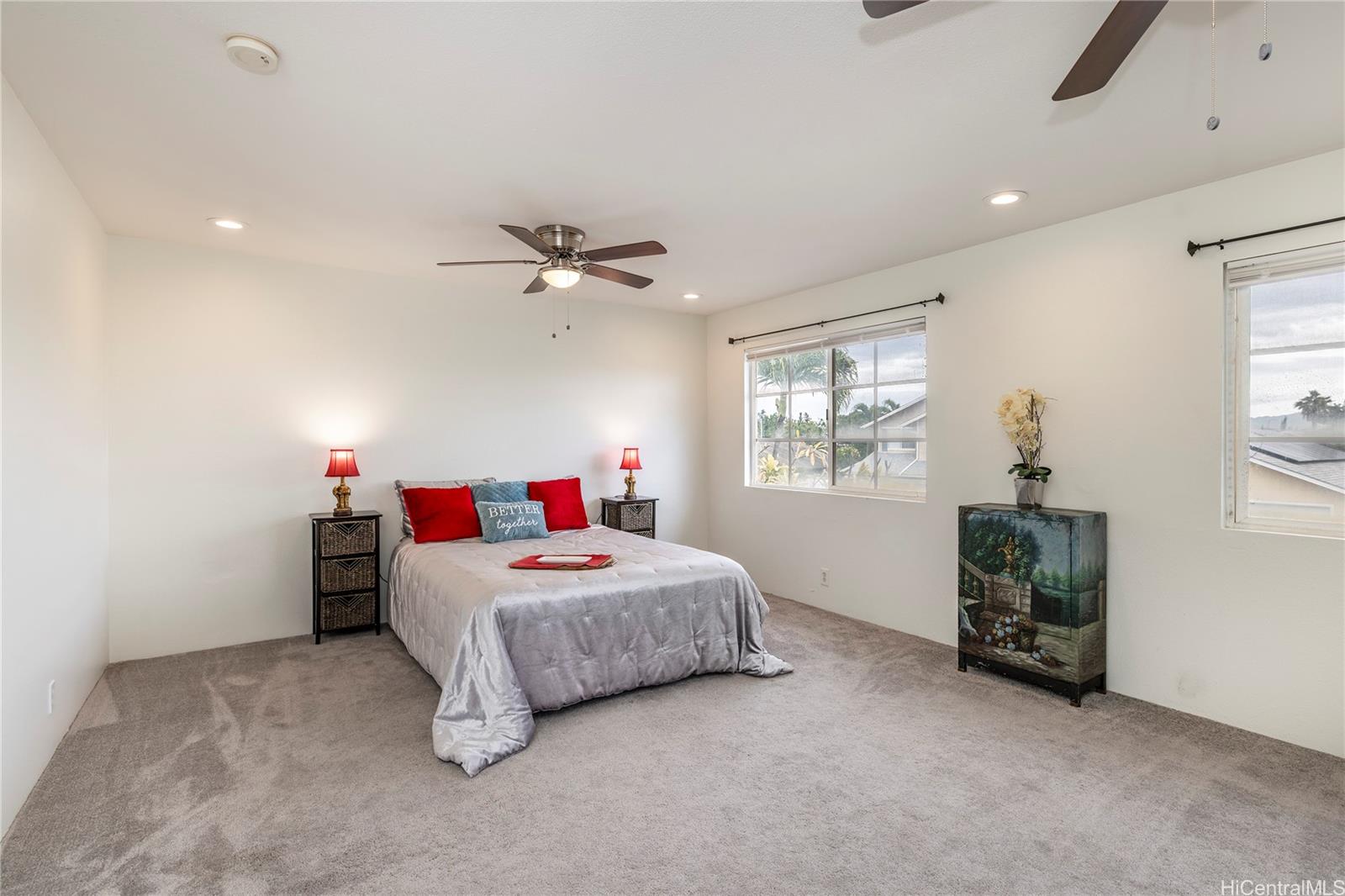 VA ASSUMABLE Loan LESS than 2.99%!!!! Nestled in Ewa Gentry’s Sun Terra South, this 5-Bedroom, 3-Bath, nearly 2,000 square foot home offers flexible living with a FULL Bedroom and FULL Bathroom with a TUB Downstairs. This amazing home also has a Private Owner’s Suite Upstairs with a Walk-In Closet and Double Vanity Sinks and Cabinetry. Two separate Living Rooms invite relaxation and entertainment, while the Dining Room opens into a Kitchen with a Walk-In Pantry.