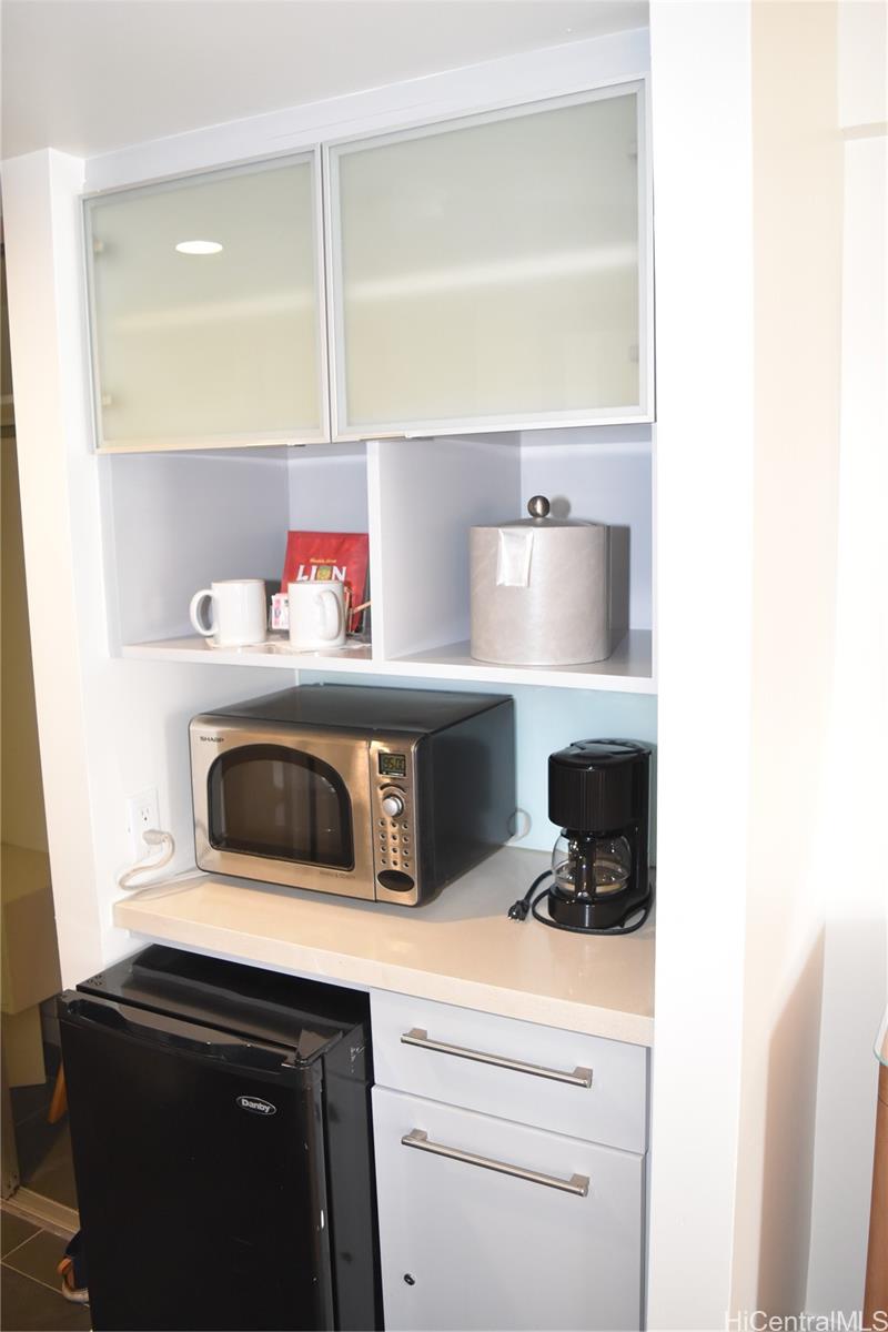 Enjoy elegant island style living in this condo-hotel. 18th floor partial ocean view studio unit. Adjacent to Ala Moana Shopping Center with over 350 shops and restaurants. Located a block away from Ala Moana Beach Park and two blocks from the Convention Center. Use for your personal getaways or place in the vacation rental program. Guests can enjoy resort style amenities such as pool, fitness center, sauna, on-site dining, meeting rooms and complimentary wi-fi. Maintenance fee includes internet, cable tv, electricity, A/C and water.