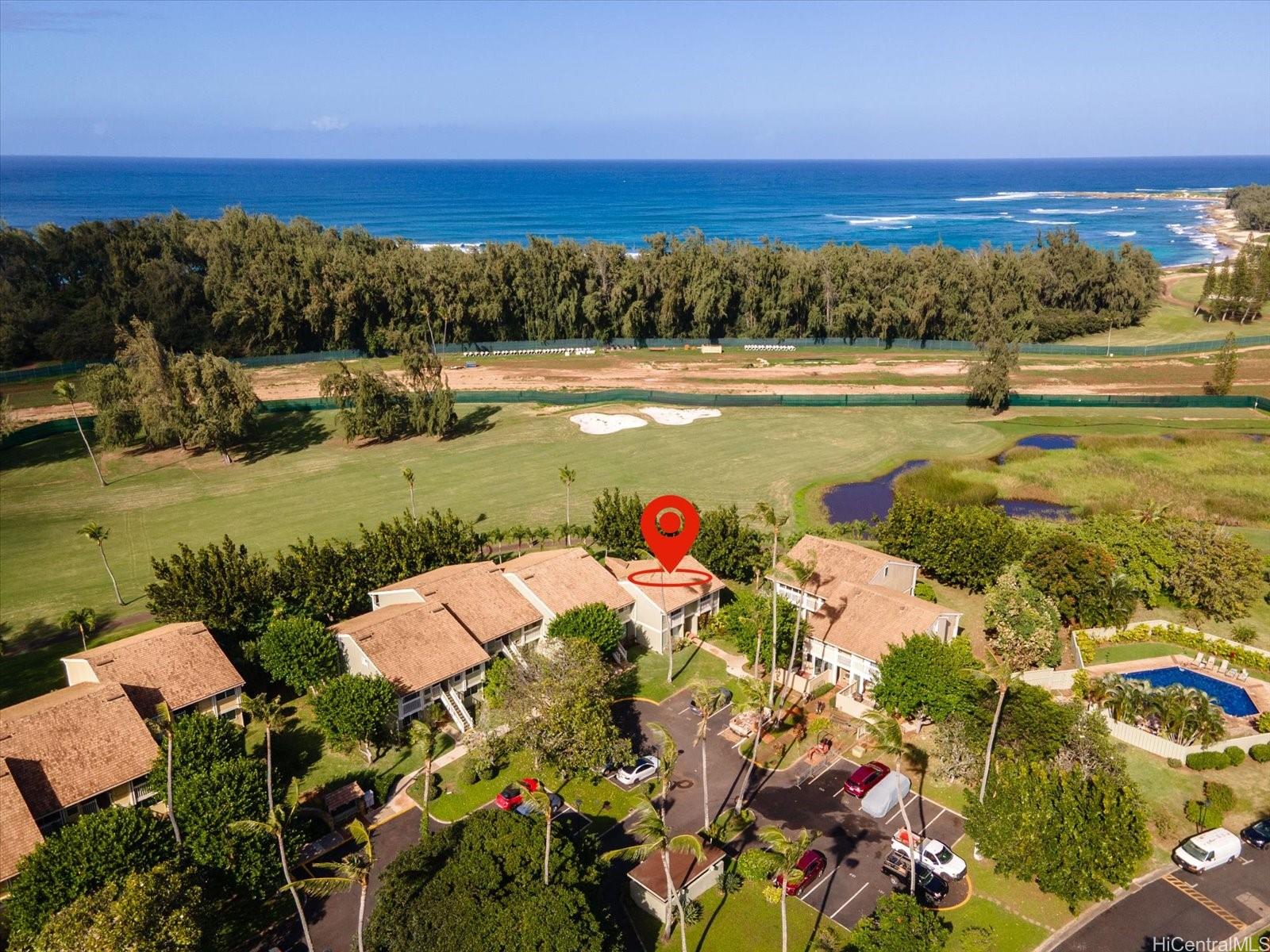 Situated in the sought-after Kuilima Estates East on the North Shore one of the only few areas that allows short term rentals. Unit #140 is a rare gem offering tranquility, luxury, and flexibility. This renovated 2-bedroom, 2-bath unit, with a versatile loft sleeping six, spans 1,072 sq. ft. Relax on the covered lanai with serene golf course views, or take a short stroll to the beach. A standout feature? An adjoining access door to the neighboring unit #139, offering the potential for a combined 4-bedroom, 4-bath layout—perfect as a spacious family retreat or dual-purpose living and rental opportunity. Residents enjoy resort-style amenities: a sparkling pool, tennis/pickleball courts, and a barbecue area ideal for gatherings. Plus, the renowned 5 Star Ritz Carlton Turtle Bay Resort is steps away, with pristine beaches, world-class dining, and vibrant nightlife. From Lei Lei’s to the Beach House by Roy Yamaguchi, it’s a celebration of island living. This isn’t just a property—it’s your chance to embrace the Hawaiian lifestyle. Opportunities like this are rare and this is the only unit in Kuilima Estates East with a adjoining door creating 2 or 4 bedroom multiple rental opportunity!
