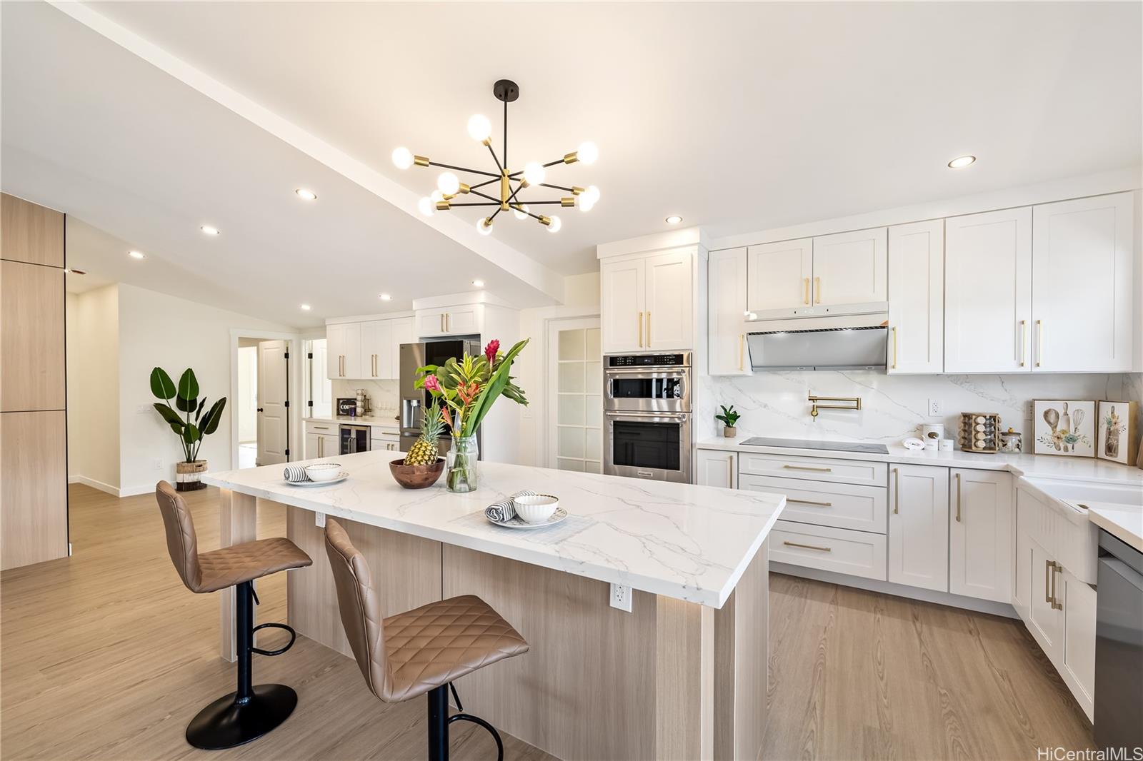 人気のココヘッドテラス地区に位置する、全面改装済みの平屋建て4ベッドルーム、2バスルームの住宅へようこそ。2,312平方フィート(約230平方メートル)の美しく整えられた居住空間と大型カーポートを備えています。配管、電気設備、屋根は新品、キッチンとバスルームは全面改装済みで、安心してお過ごしいただけます。広々としたオープンコンセプトのキッチンには、レンジフード付きの大型センターアイランド、アップグレードされたビルトインウォールオーブン、電子レンジ、36インチのコンロ、ワインセラーが備え付けられています。さらに、パントリーと屋内ランドリールームも備え、機能性を高めています。電気自動車充電器も備え、日々の暮らしにさらなる利便性をもたらします。各部屋にはスプリットエアコンが完備され、一年を通して快適な空間を提供します。自動スプリンクラーシステムを備えた手入れの簡単な庭は、手入れが簡単で、ゆったりとしたアイランドライフをお楽しみいただけます。ココマリーナショッピングセンター、コストコ、カイザー高校、ハワイカイゴルフコース、ハナウマ湾、公園、レストラン、マリーナへのアクセスも至近距離という理想的な立地にあるこの素晴らしい物件は、東オアフ島ならではの最高の暮らしをお届けします。この地域で最も人気のあるコミュニティの一つで、すぐに入居できる住宅を手に入れるこの機会をお見逃しなく。