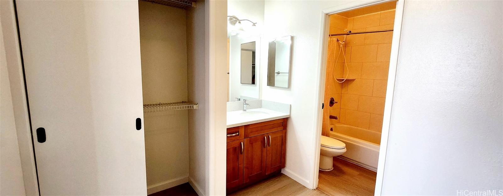 A newly remodeled unit! new vinyl flooring throughout, blinds, kitchen cabinets, bathroom flooring/wall tiles, and appliances added. Even the electrical panel is new. Experience the perfect blend of convenience and comfort in this beautifully renovated 1-bedroom, 1-bathroom condo at Kukui Plaza Ewa Tower. The building offers a large area for amenities on the 4th floor, including a lush garden deck, swimming pool, BBQ areas, and more. For added convenience, community laundry is available on every floor. Comfort, style, and an unbeatable location—all in one incredible home! Perched high in the Kukui Plaza Ewa Tower, this breezy unit offers stunning views—from the vibrant cityscape to the majestic mountains and the glistening ocean beyond. This breezy and cozy unit makes daily living comfortable and enjoyable. Don't miss this opportunity. It is at a prime spot for easy access to all the city has to offer! The sandwich lease will be cancelled, so the buyer will get 100% fee simple ownership upon closing.