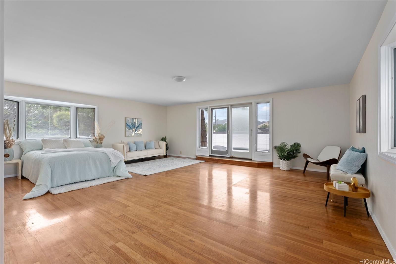 Set within the private 14-home Hale Kai Surf & Racquet Club, this expansive beachside estate offers 5 bedrooms, 4.5 baths and 3,958 interior sqft, providing a rare combination of privacy and generous living space, with a community private lane offering direct access to Kailua’s sandy beach. The main level features four bedrooms, three full baths, and a powder room, while the entire upper level is dedicated to a private primary suite with dual closets, a sunroom retreat, and access to rooftop spaces.