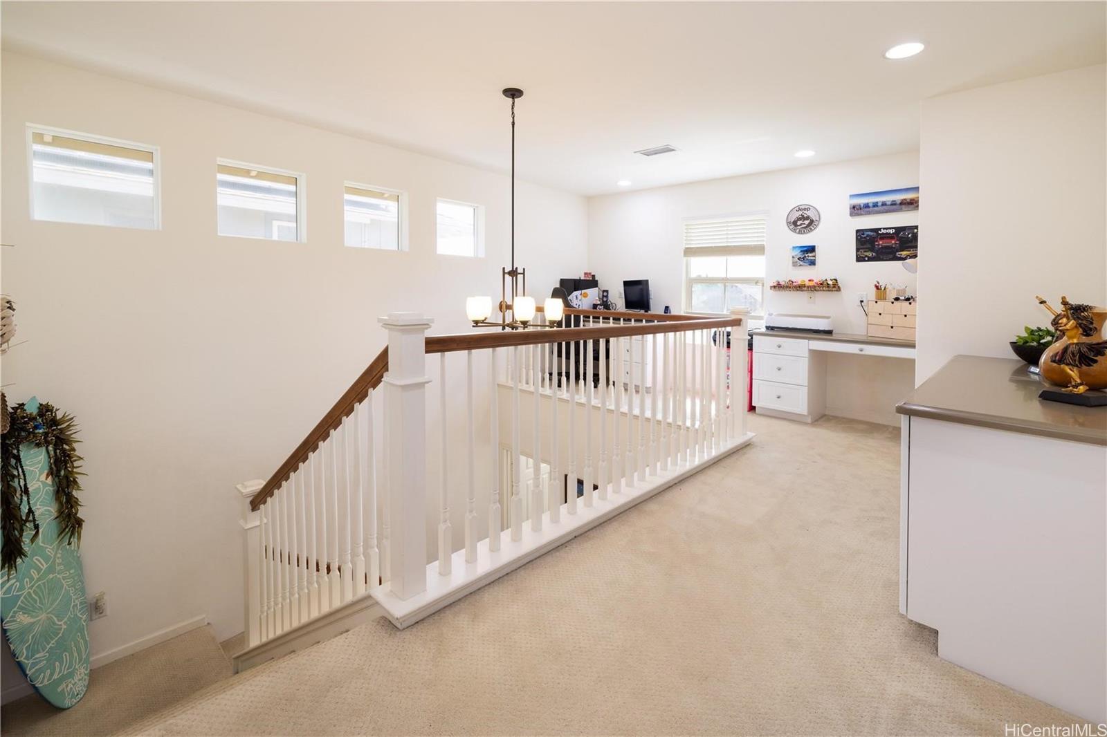 Spacious 4-bedroom, 2.5-bath home on a corner lot, featuring Berber carpeting upstairs, upgraded shaker cabinets, 42 NEW windows, plantation shutters and a large yard perfect for outdoor enjoyment. The primary suite offers an ensuite bathroom with a garden soaker tub and step-in shower. Energy-efficient photovoltaic panels help keep utility costs low. Conveniently located near shopping, Wai Kai and the esteemed Hoakalei Country Club. Monthly association fees cover essential amenities such as internet, basic cable, access to a dog park, and resort-style recreation center with tennis and pickleball courts, pool and hot tub.