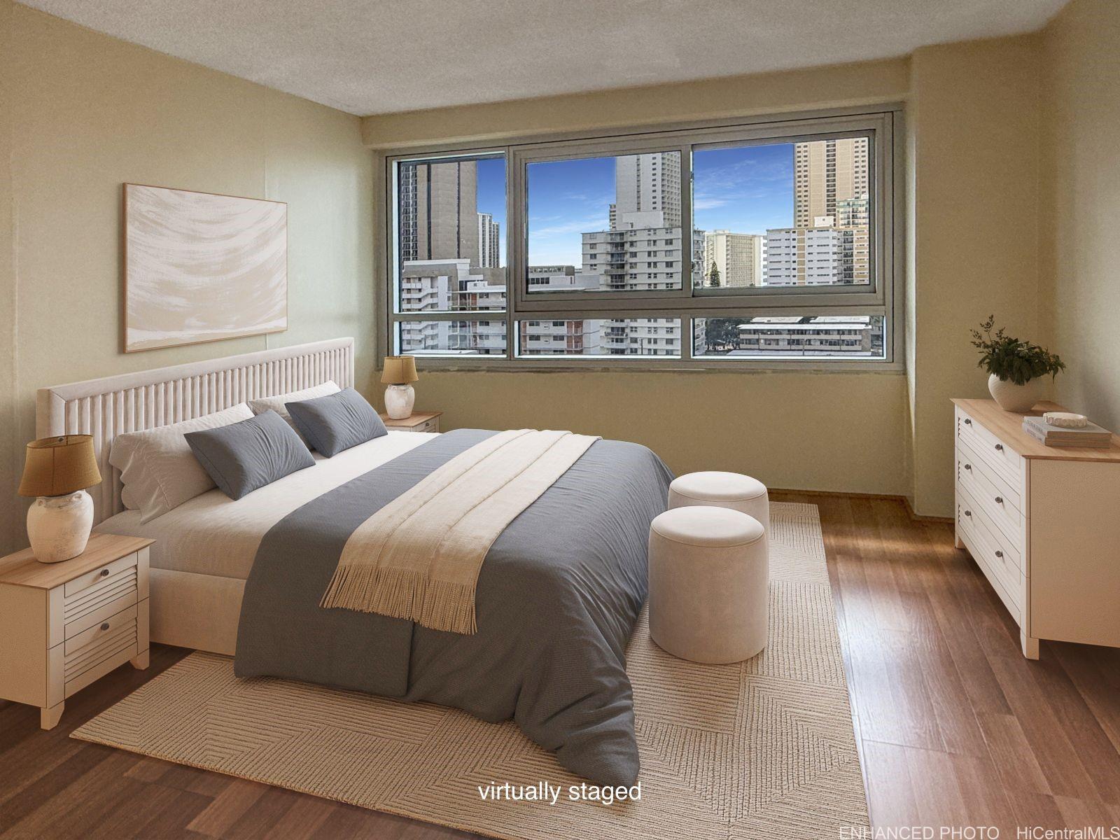 The unit includes a washer and dryer inside. It also comes with one assigned covered parking space. This is a pet-friendly building. Everything is a short distance away. Waikiki Beach is very close. The new Waikiki Market and Target are only blocks away for easy shopping. Enjoy the private pool and the peaceful environment. This unit is a clean slate ready for your personal touch. Excellent value in Waikiki. The unit is vacant, easy to show with a lock box, and parking #38 is available for you.