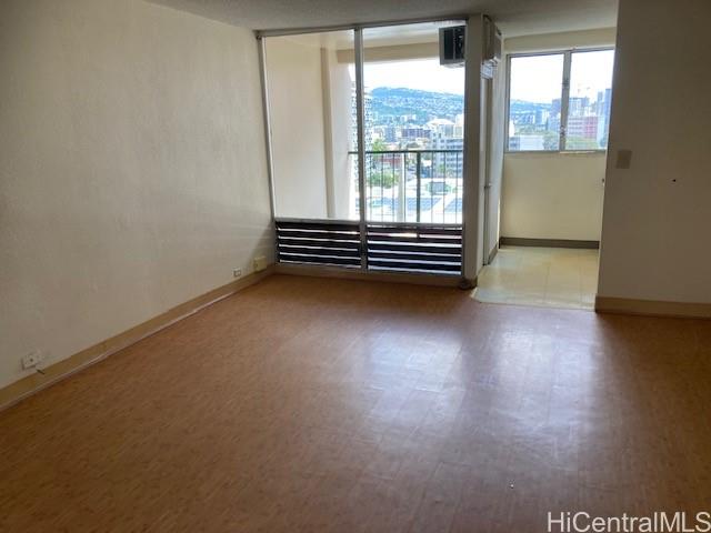 Vacant unit, EZ to show. End unit with panoramic city mountain view. On cool and quiet side of the building. Convenient location, right across from a 24 hrs. operating supermarket (Don Quijote), close to bus line and Ala Moana Shopping Center, Walmart, Target and any restaurants. Sunny pool on 27th fl., secured access with keyed elevators. The unit offers AS IS condition with great potential for renovation at Buyer's desire. Foreign sellers are easily work with. Monthly maintenance fees cover electricity, internet/cable TV, water, trash pickup and trash pickup. Site manager and security office in the lobby.