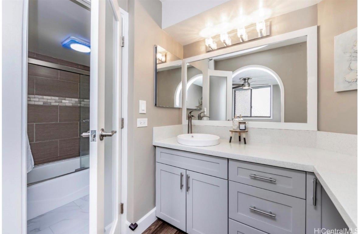 Enjoy easy living with resort-style amenities: a large swimming pool, full-size tennis court, BBQ and outdoor lounge areas, a freshly renovated lobby, and secure covered parking. Conveniently located from Downtown Honolulu, Tripler, Ala Moana, schools, restaurants, and freeway access. This home offers both serenity and city convenience!
