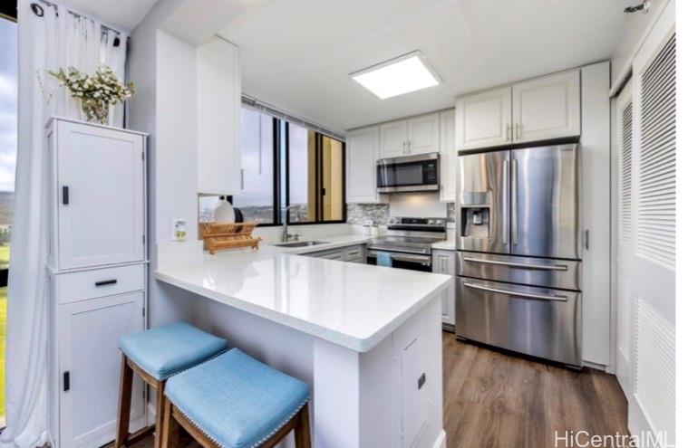 袋小路に佇む静かなアイランドライフ、カントリークラブ・ビスタは、各フロアに2戸のみ。各戸からはホノルル・カントリークラブ・ゴルフコースの息を呑むようなパノラマビューをお楽しみいただけます。高層階に位置する2ベッドルーム、2バスルームのこの住宅は、キッチンとバスルームのアップグレード、新しい床材、モダンな照明、そしてスタイリッシュな仕上げで美しくリフォームされています。床から天井まで届く窓から差し込む太陽の光が、息を呑むような緑の景色を縁取り、明るく居心地の良い空間を創り出しています。特典:VA(退役軍人省)の資格を持つ購入者には、VAローン(VAおよび金融機関の承認が必要)をなんと2.75%という驚異的な金利でご利用いただけます!リゾートのようなアメニティで快適な暮らしをお楽しみください。大型プール、フルサイズのテニスコート、バーベキューエリア、屋外ラウンジエリア、改装されたばかりのロビー、そして安全な屋根付き駐車場をご用意しています。ホノルル・ダウンタウン、トリプラー、アラモアナ、学校、レストラン、高速道路へのアクセスも抜群です。この住宅は静寂と都会の利便性の両方を兼ね備えています。