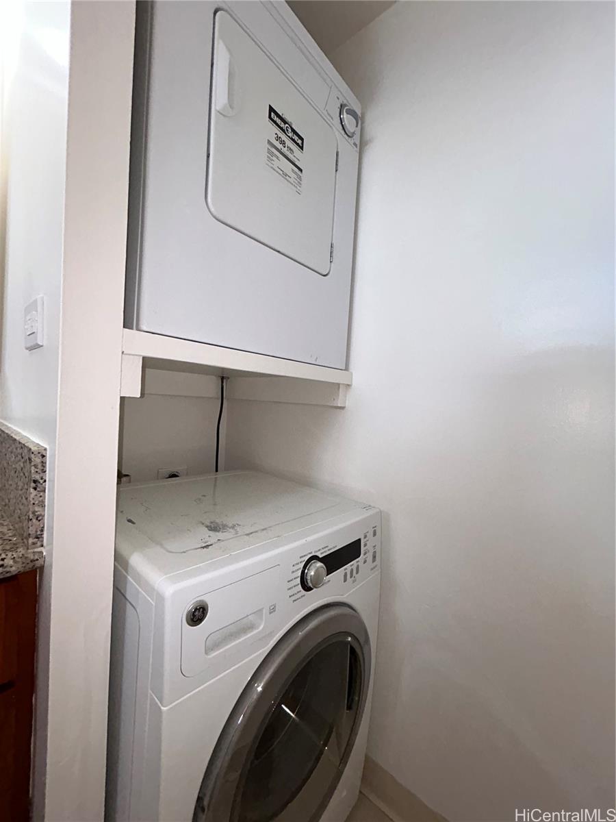 Affordable home or Investment. Well designed studio; full bathroom that also includes a washer & dryer, no need to take your laundry out. Building also has a laundramat for large items. Full kitchen that is seperate from the living room. New 1200 BTU window AC. Covered parking in a secured garage, with a short walk to elevator lobby. Pleasant Sunrise, Pearl Harbor and Golf Course views. Building features: full time manager/security, ample guest parking, pool, sauna. Unit has just been refreshed with new vinyl plank flooring and new paint throughout. Move in ready. Pearlridge Square is well located, on bus line and within walking distance to the Pearlridge Shopping Center, Pali Momi Medical Center, Skyline Transit Station, and with EZ access to the freeway.