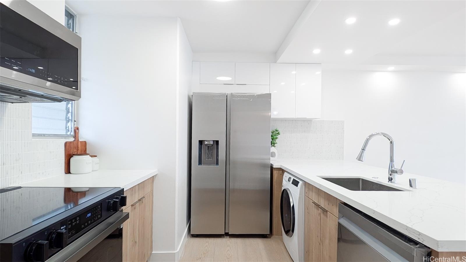 This fully renovated 2-bedroom, 1.5-bath unit boasts a modern kitchen with a sleek island, updated bathrooms and bedrooms, new flooring, fresh paint, and a stylish drop ceiling. It comes equipped with brand-new appliances, including a refrigerator with filtered water and ice maker, range with oven, microwave hood, dishwasher, water heater, and window A/C. An in-unit washer and dryer add everyday convenience. Step outside to an 85 sq. ft. covered lanai featuring a hurricane shutter for enhanced privacy. The secured building offers gated access to both the residence and parking area, with an onsite resident manager and a newly tiled pool. VA loan approved and 100% insured—this move-in ready home is perfect as a starter residence.