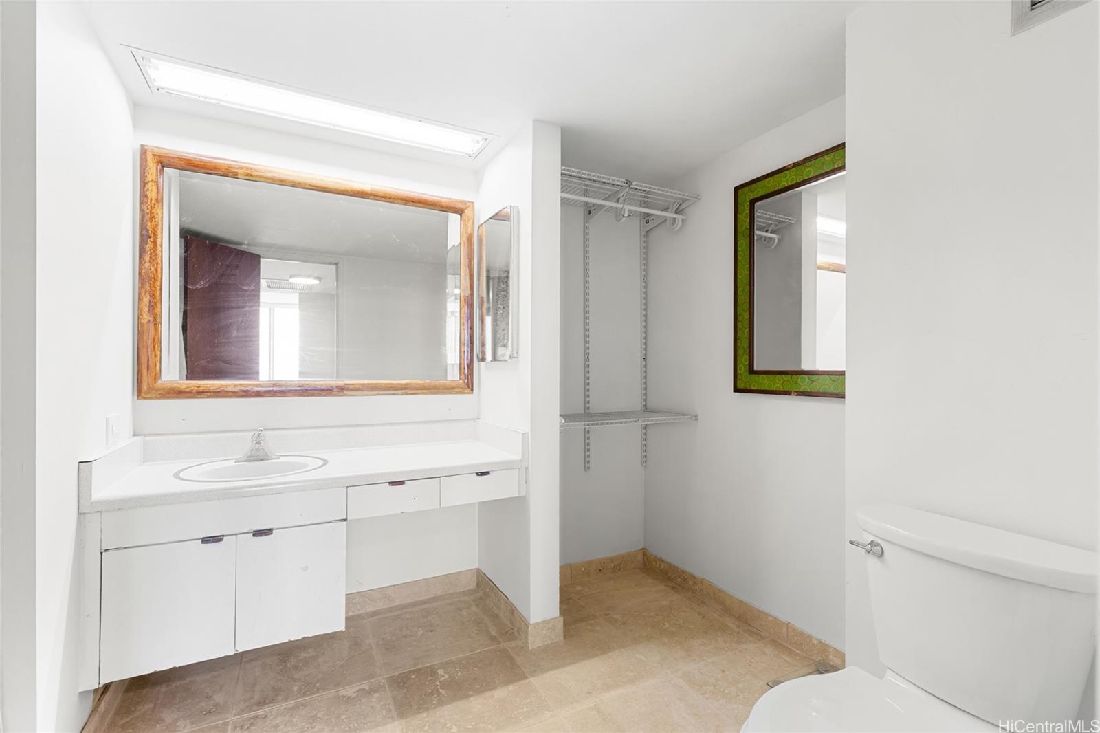 unit has also been upgraded with new travertine tile in the kitchen and bathroom, complimented by lovely
