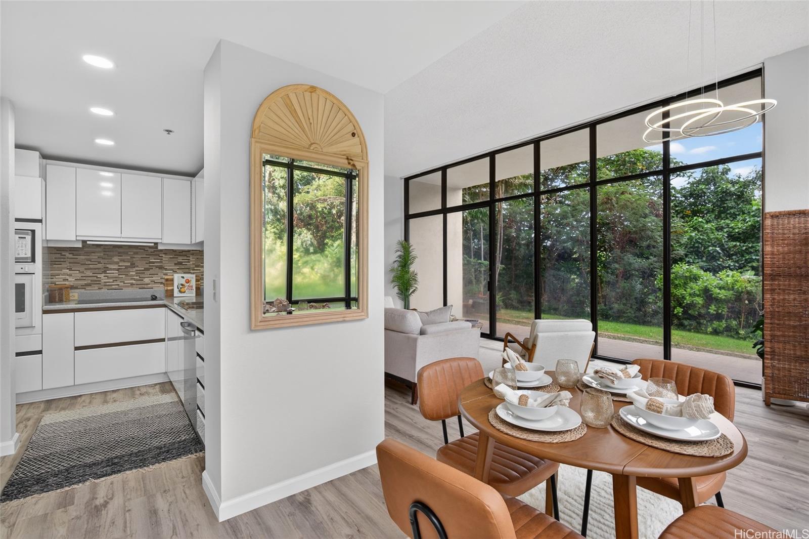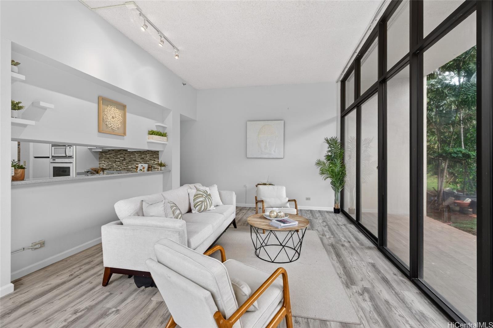 安全なゲート付きコミュニティ内で、希少な価値ある物件をお探しなら、ぜひご検討ください。改装・アップグレード済みの1階角地レジデンスは、他のユニットよりも広い広さ、高い天井、そして美しい自然光が差し込む広々とした空間を誇ります。静かな庭園に囲まれた、まるでプライベートな隠れ家のような空間です。専用のラナイ、時代を超えた快適さを備えた広々とした間取り、そしてペットフレンドリーな建物は、島での快適な暮らしを演出します。リゾートスタイルのアメニティには、プール、サウナ、フィットネスセンター、バーベキューエリア、会議室などがあり、ショッピング、レストラン、高速道路へのアクセスもわずか数分。カイザー病院とトリプラー病院にも隣接しており、大変便利です。他に類を見ない広さ、静寂、そして価値。今すぐ内覧のご予約を。追加の駐車場についてもお問い合わせください。