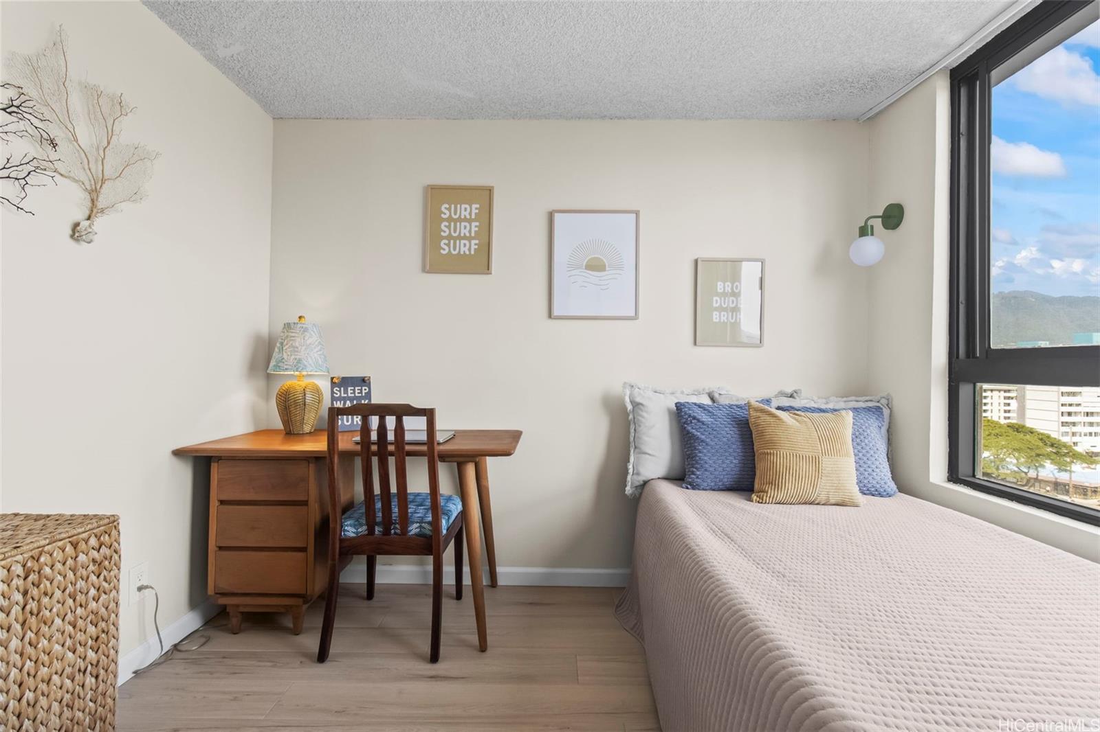 Amenities feature a BBQ area, car wash, pool, hot tub, and sauna, along with secure parking. Ideally located near the University of Hawaii, with easy access to bus lines, King Street dining, Market City Mall, Waikiki, and major freeway on- and off-ramps. Includes one assigned parking stall in a secured area. Don’t miss this fantastic opportunity—schedule your showing today!