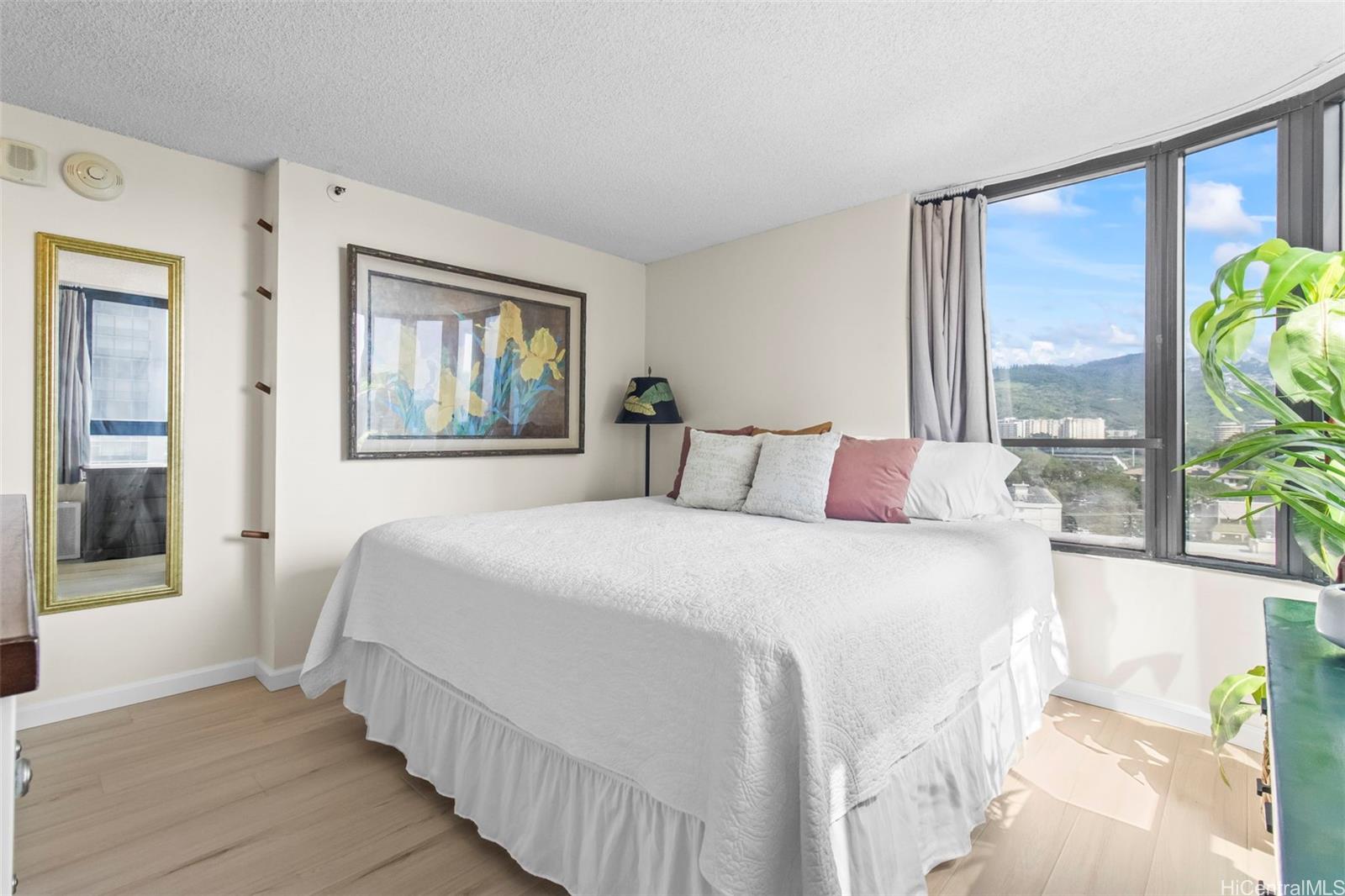 E Komo Mai to Kings Gate! This cool and breezy 2-bedroom, 2-bath condo offers incredible value and is priced to sell. Enjoy serene mountain and Manoa Valley views in a VA-approved building with 100% hurricane insurance coverage. The building has completed the plumbing retrofit project and already has fire sprinkler/ fire alarm system, adding peace of mind.