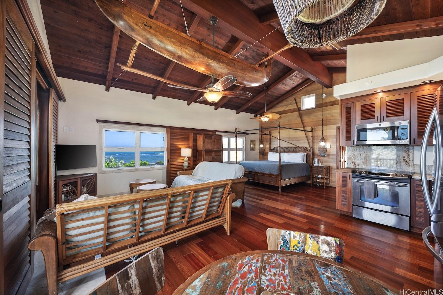ノースショアのビーチフロントに佇む、非常に希少なリトリート。このプライベート感あふれる砂浜のビーチフロント物件は、穏やかで透き通った海と海岸線が出会う、数少ない物件の一つです。毎日のスイミング、釣り、サーフィンなど、ご自宅からすぐの場所でお楽しみいただけます。静かで人里離れた雰囲気でありながら、食料品店が並ぶショッピングセンター、診療所、レストラン、劇場、BYUハワイ校、そしてオアフ島屈指の美しい白砂のビーチなど、生活に便利な施設もすぐ近くにあります。メインの住居(55-373 Kamehameha Hwy)は2010年に入念に改装され、ブラジル産の無垢材のフローリングとトラバーチンタイルが随所に敷き詰められています。セカンドハウス(55-373A)は2014年に新築され、オリジナルの家と調和した仕上げとデザインの連続性を備えています。どちらの住宅も、アーチ型の天井、遮るもののない海の景色、プライベートビーチへのアクセス、そして完璧な維持管理が特徴で、ノースショアの真のビーチフロントの複合施設を所有できる稀有な機会を提供します。