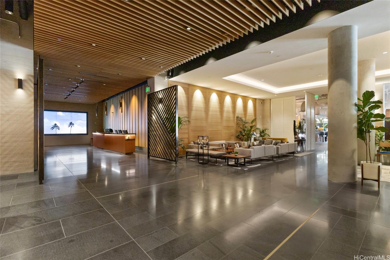 The building provides a full-service hotel experience with lobby check-in, valet, an on-site café and restaurant, plus an expansive amenity deck featuring multiple pools, a hot tub, cabanas, a state-of-the-art gym, and a full-service bar. Located directly across from Ala Moana Center and moments from dining, shopping, Don Quijote, Walmart, and an indoor golf facility, this is a refined alternative to the bustle of Waikiki. A stylish, flexible, and highly desirable residence in one of Honolulu’s most exciting new luxury offerings.