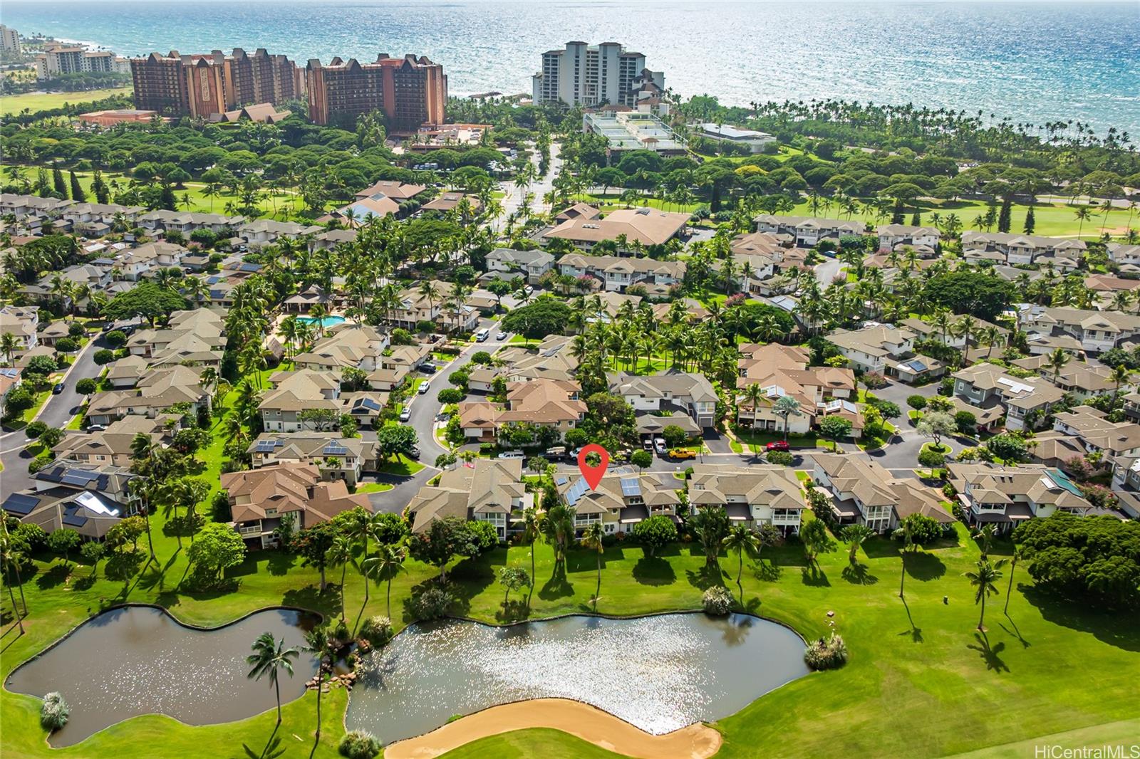 コオリナ・リゾート13番フェアウェイでリゾートスタイルの暮らしを。高級リゾートコミュニティにある、美しく改装された4ベッドルーム、3バスルームのタウンハウスで、静かな池の景色を楽しみながら、洗練されたアイランドライフをお楽しみください。1,834平方フィートの室内居住スペースを備えたこのターンキーレジデンスは、22枚の太陽光パネルを備えた自社所有の太陽光発電システムなど、あらゆる面でアップグレードされています。広々とした柔軟な間取りは、常住、セカンドハウス、または投資用途に最適です。最低30日間の賃貸契約が必要です。ビーチへのアクセス、ゴルフ、テニス、ピックルボール、フィットネスセンター、コオリナ・ビーチ&スポーツクラブのクラスなど、リゾートのアメニティをお楽しみください。高級レストラン、マリーナへのアクセス、遊歩道、リゾートの便利な施設までわずか数分です。オアフ島で最も魅力的なリゾート地の一つで、ターンキーで改装されたレジデンスを所有できる貴重な機会です。短い通知ですぐにご覧いただけます!2026年3月8日(日)午後1時から4時まで、サンデーオープンハウスを開催します。